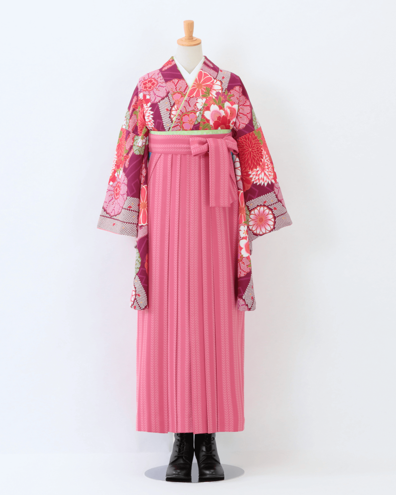続いては、下に履く袴にピンクを取り入れたコーデをご紹介。