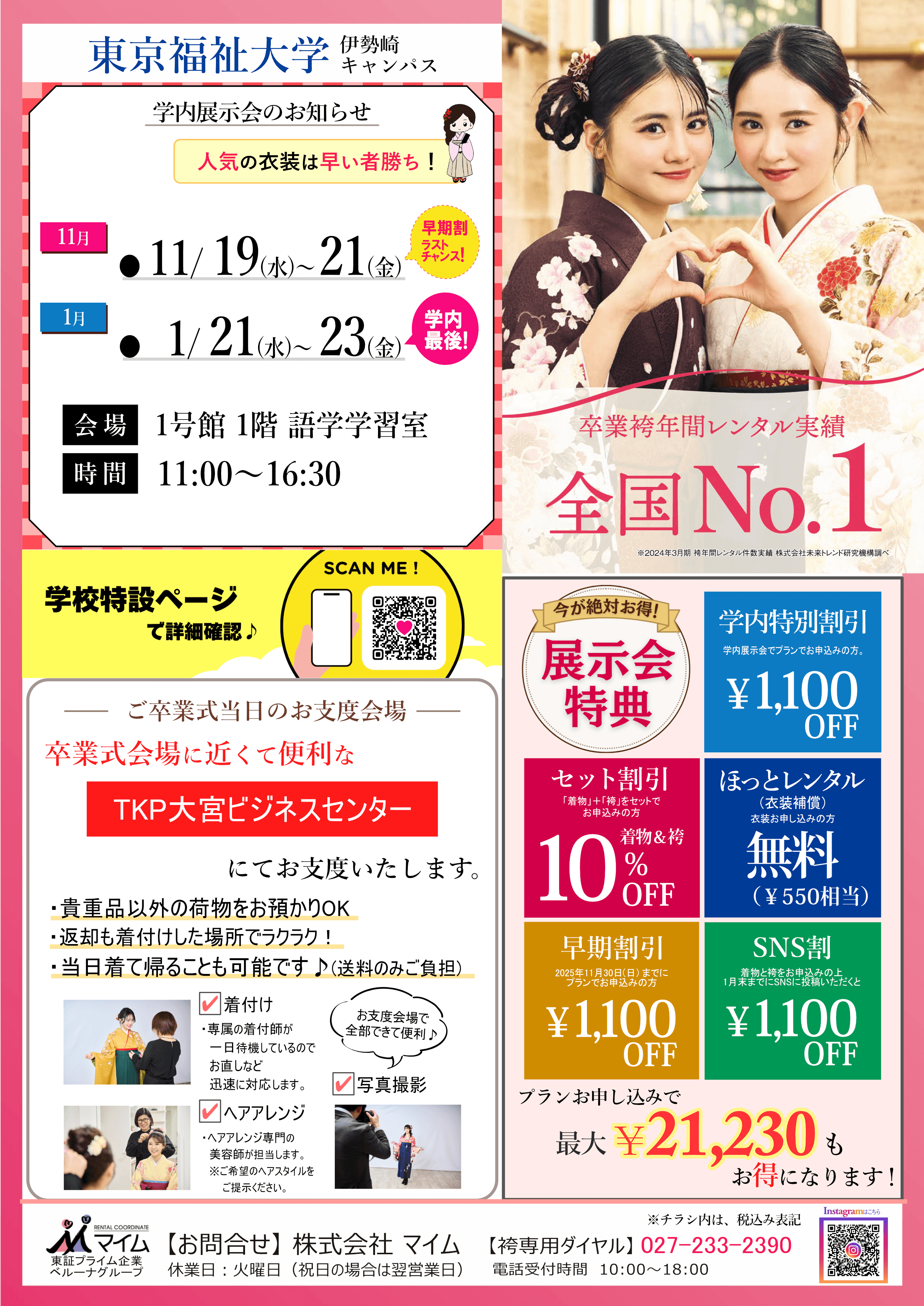 東京福祉大学 伊勢崎 ー 2026年卒業式レンタル袴情報 ー