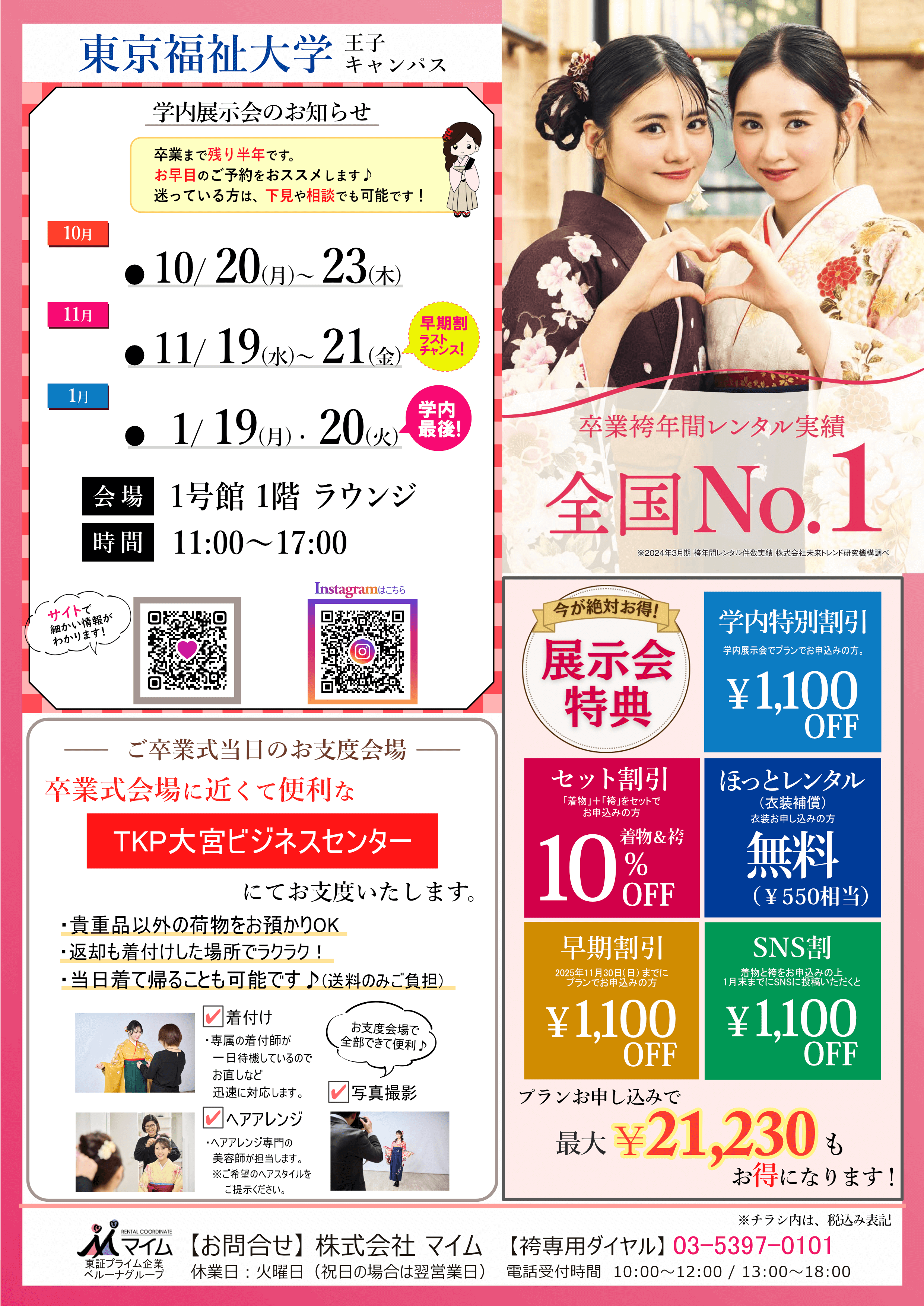 東京福祉大学 王子 ー 2026年卒業式レンタル袴情報 ー