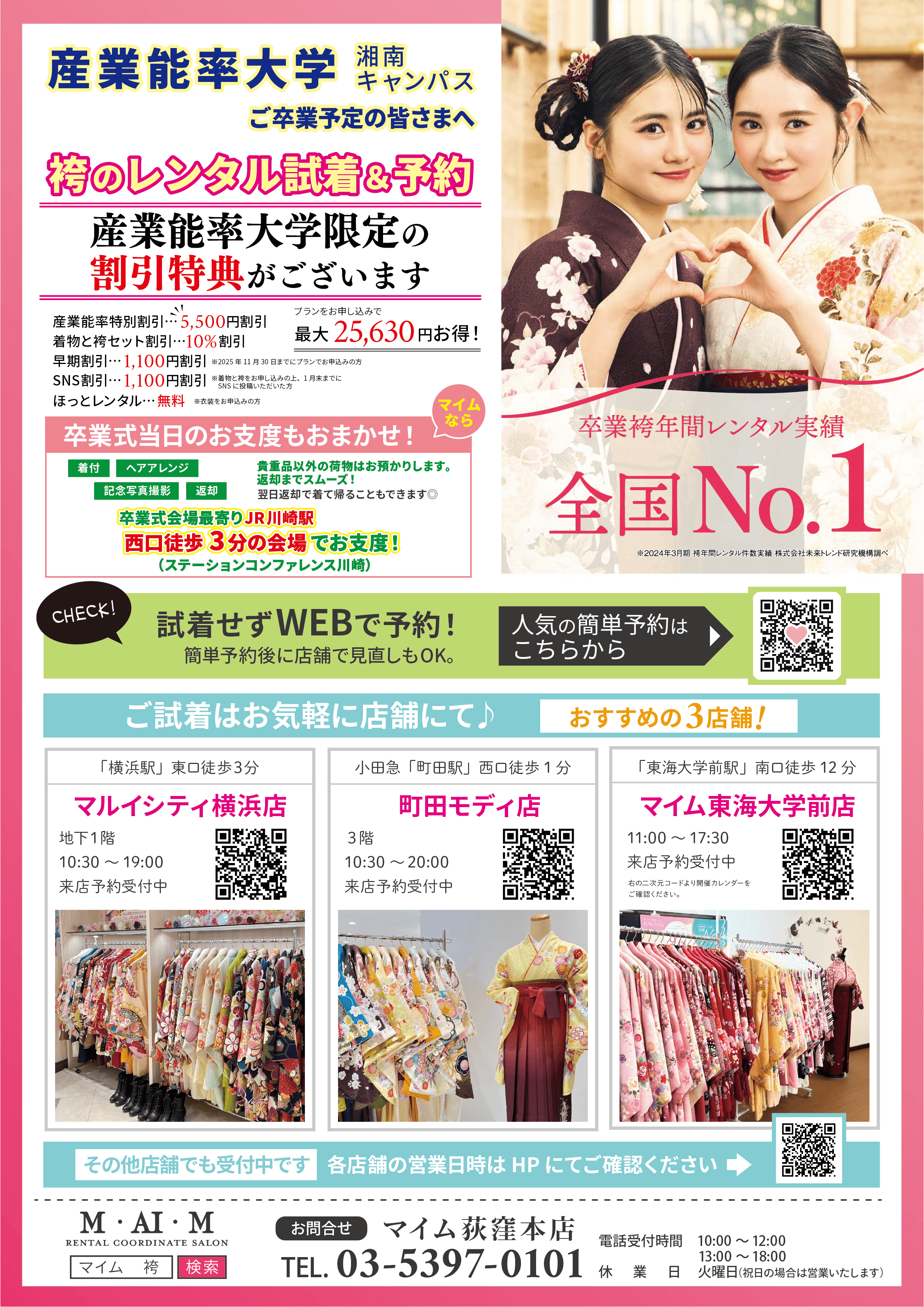 産業能率大学 湘南 ー 2026年卒業式レンタル袴情報 ー