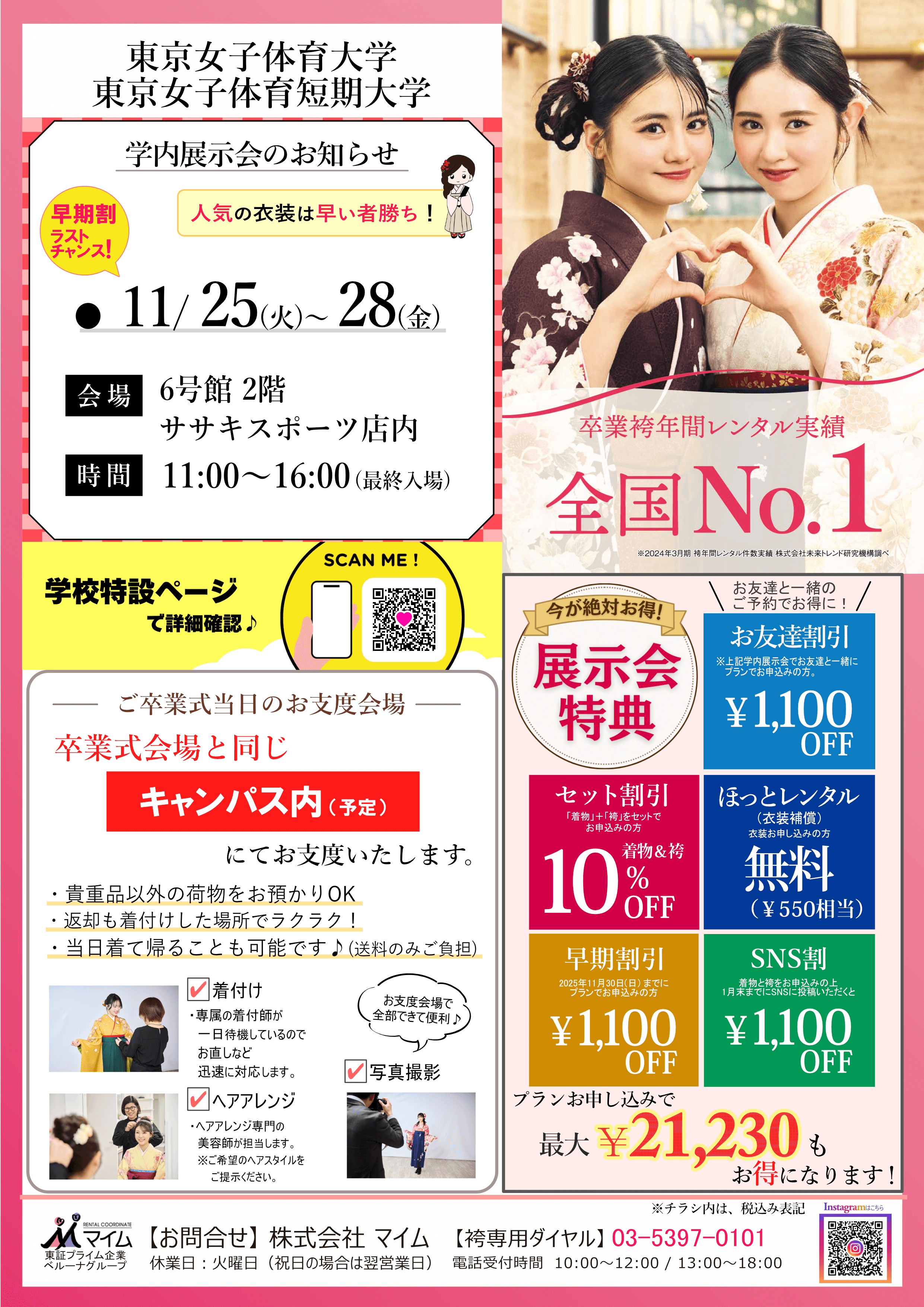 東京女子体育大学・短期大学 ー 2026年卒業式レンタル袴情報 ー