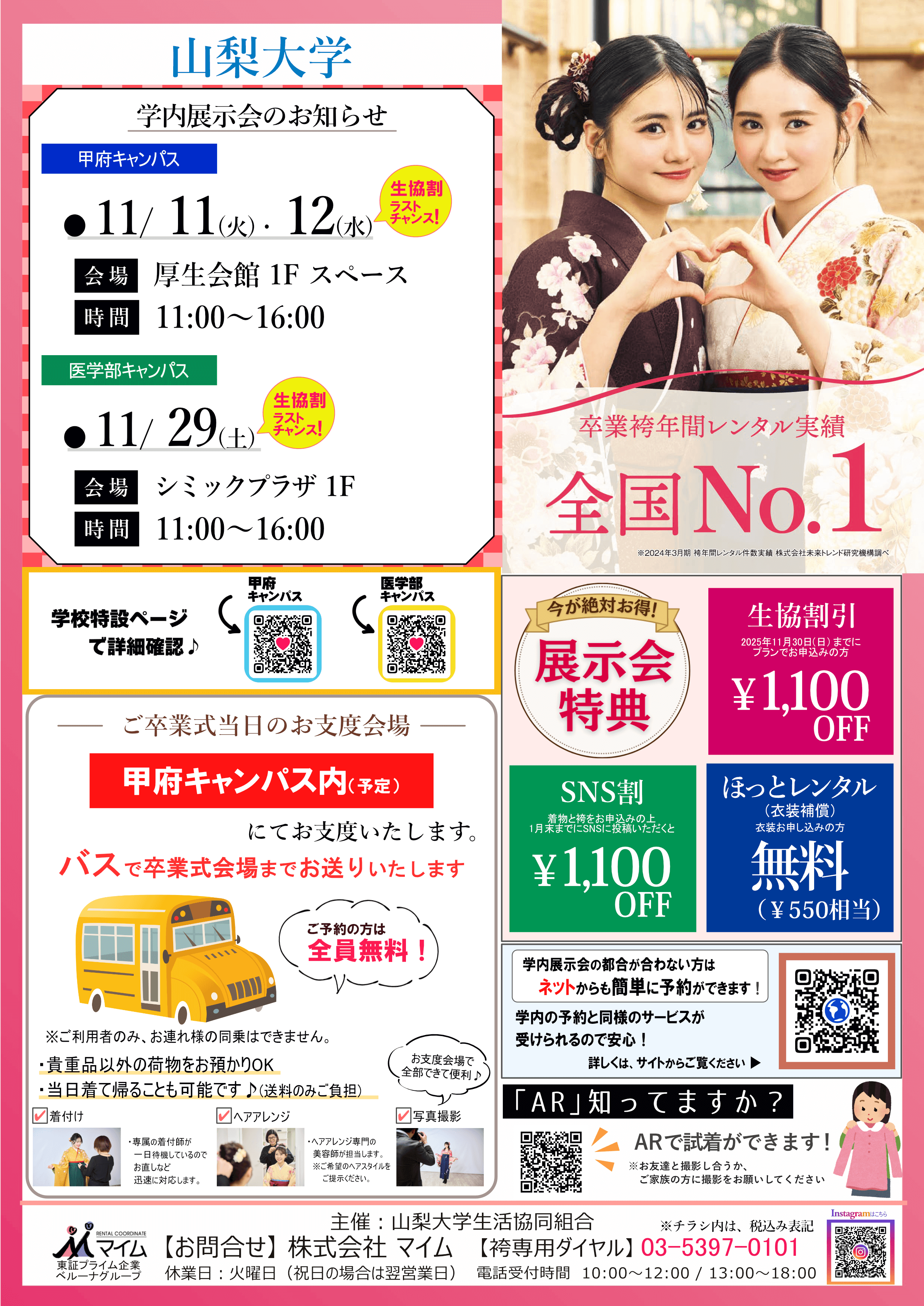 山梨大学 甲府 ー 2026年卒業式レンタル袴情報 ー
