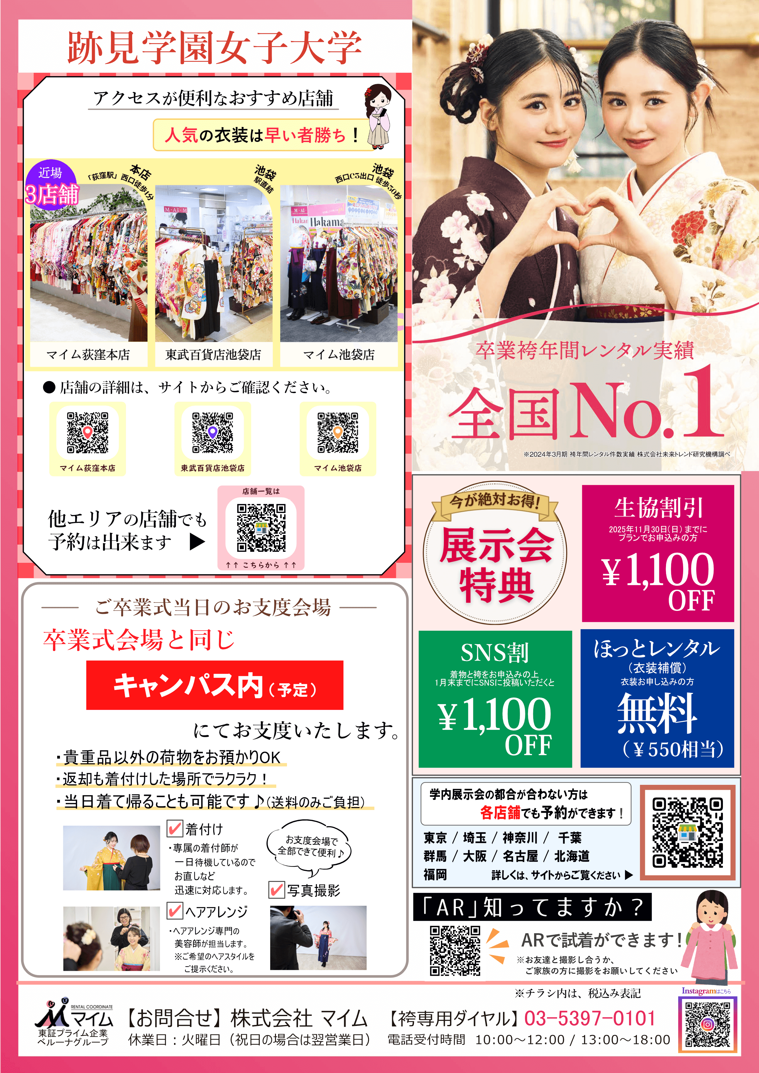 跡見学園女子大学 文京 ー 2026年卒業式レンタル袴情報 ー
