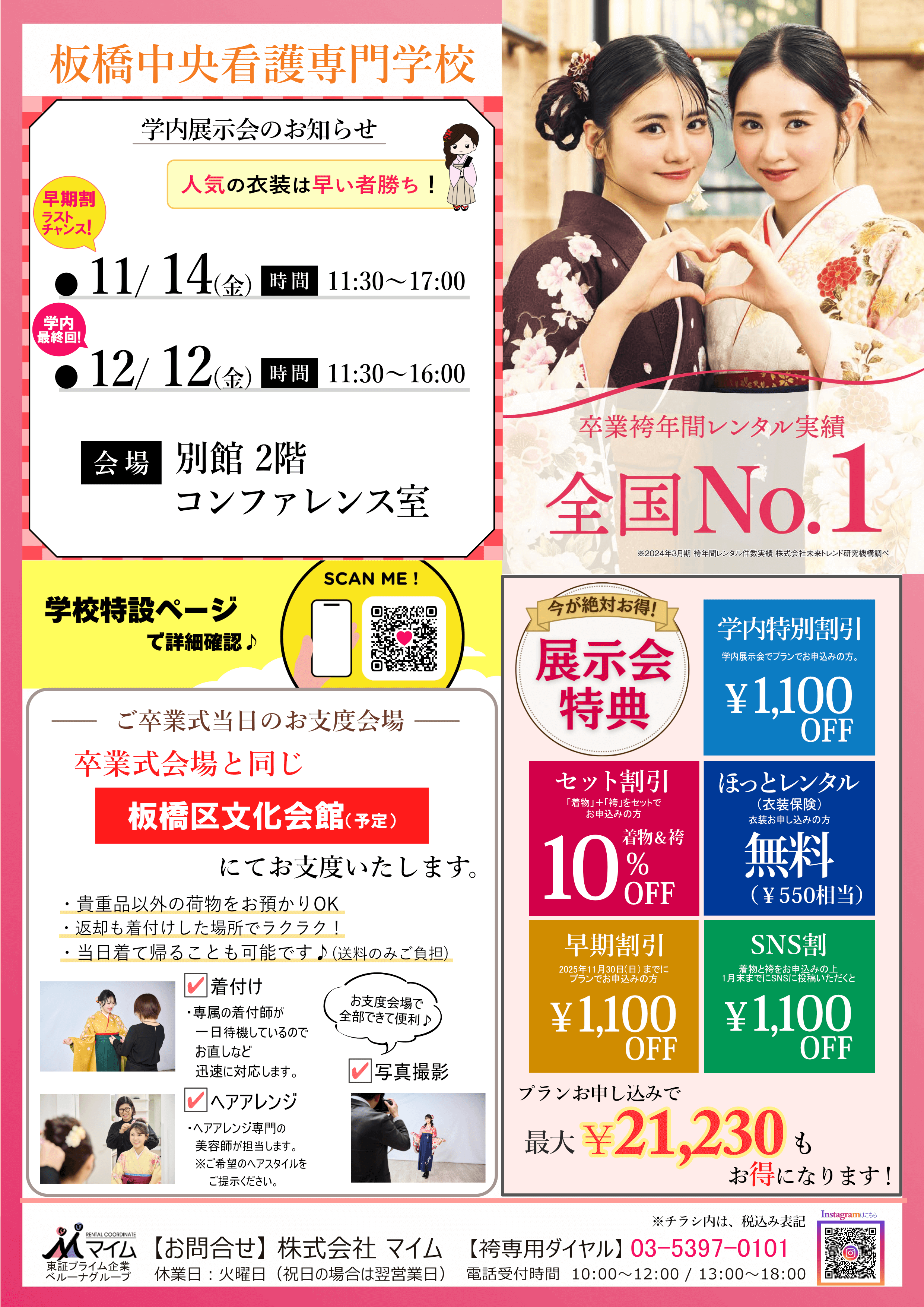 板橋中央看護専門学校 ー 2026年卒業式レンタル袴情報 ー