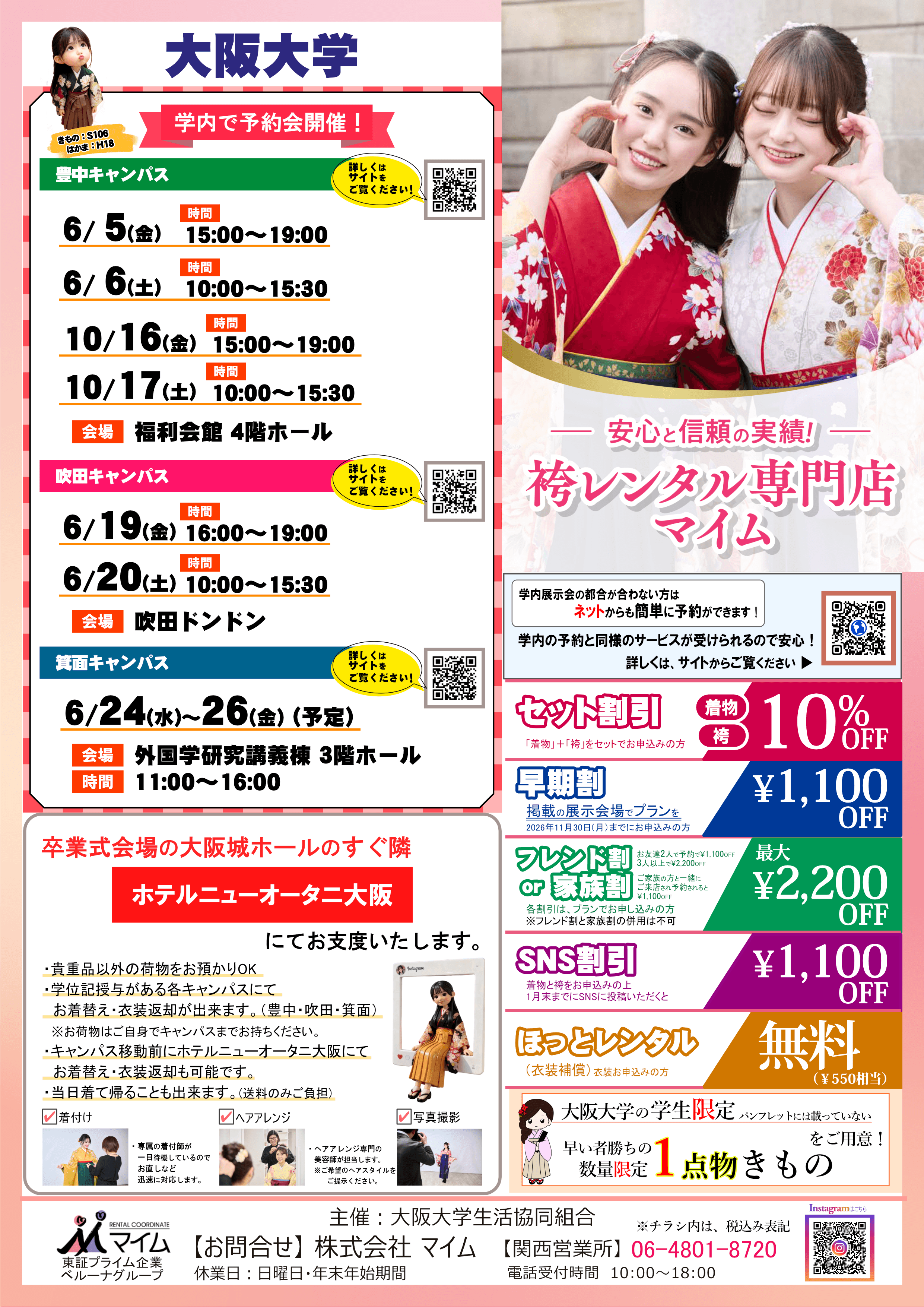 大阪大学 豊中 ー 2027年卒業式レンタル袴情報 ー