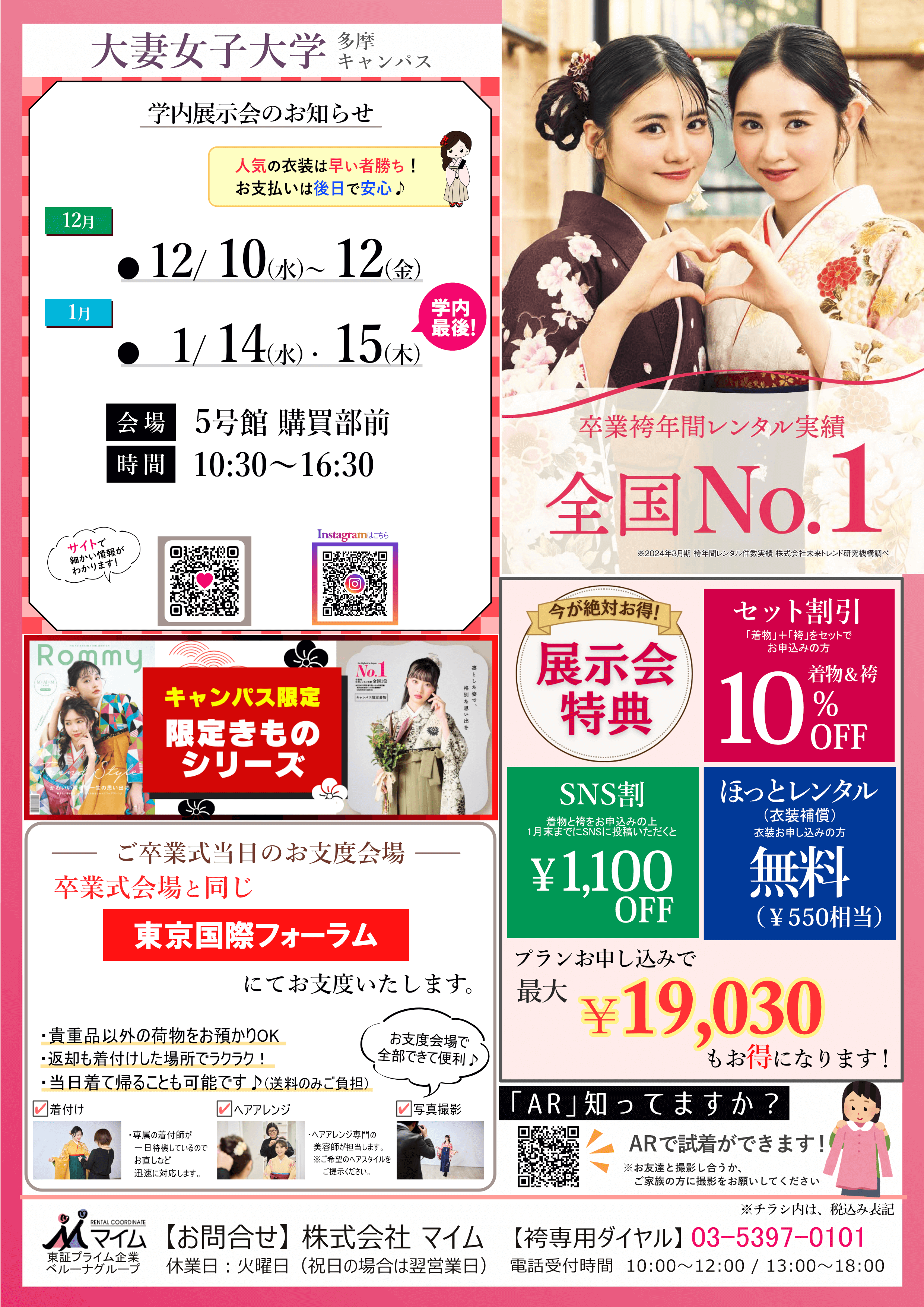 袴レンタルがスタートしました!また、大妻女子大学の皆様は