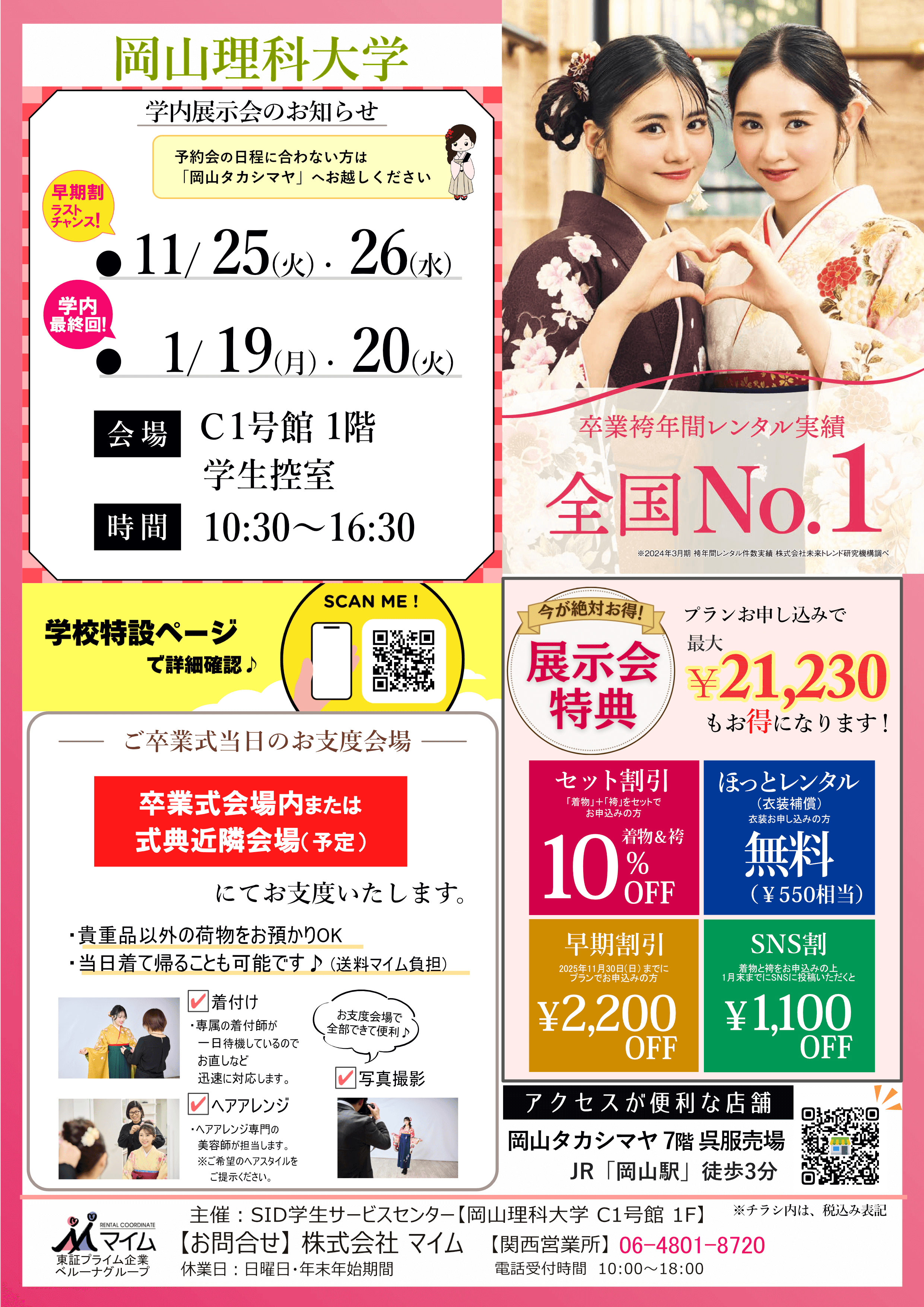 岡山理科大学 ー 2026年卒業式レンタル袴情報 ー