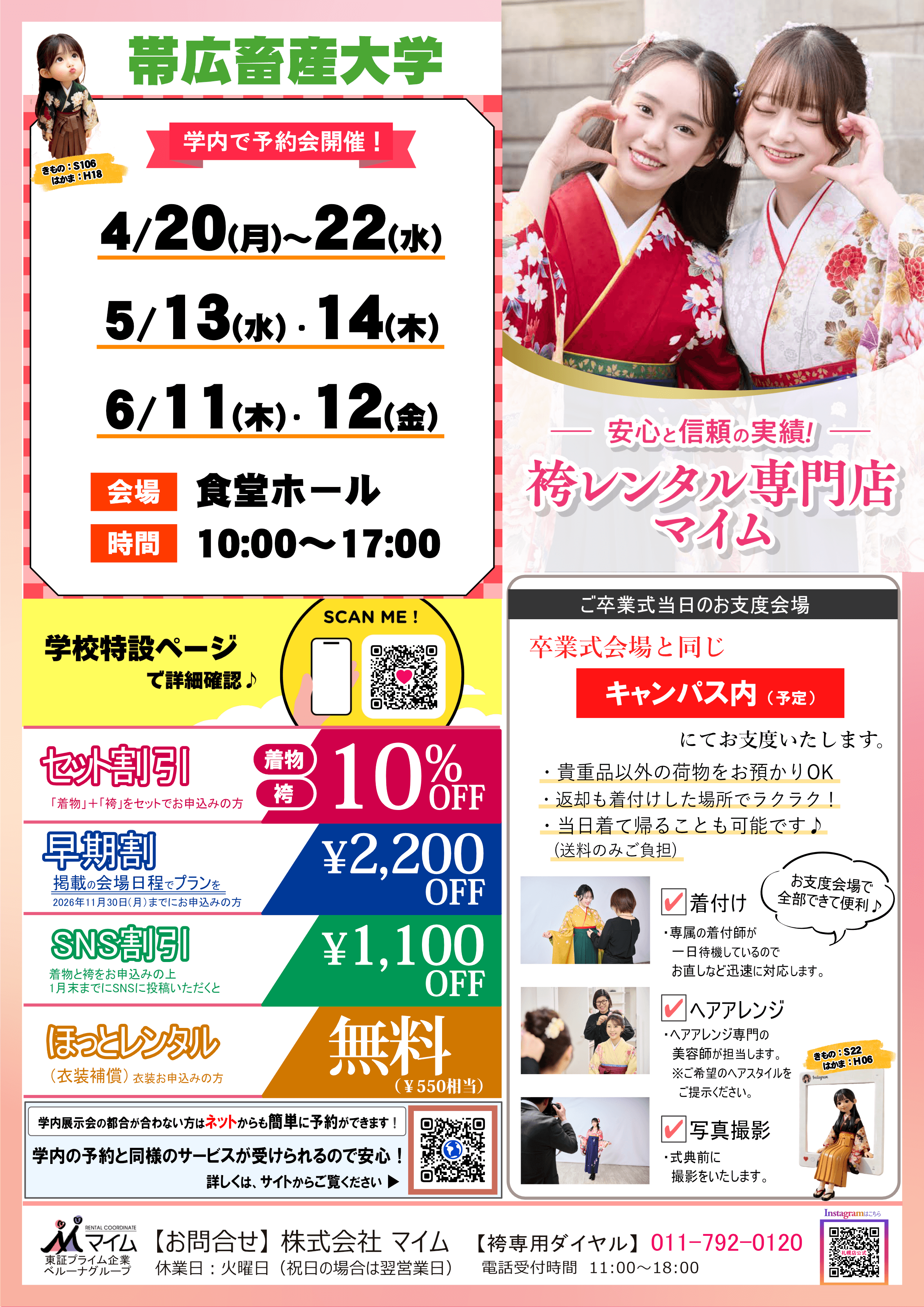 帯広畜産大学 ー 2027年卒業式レンタル袴情報 ー