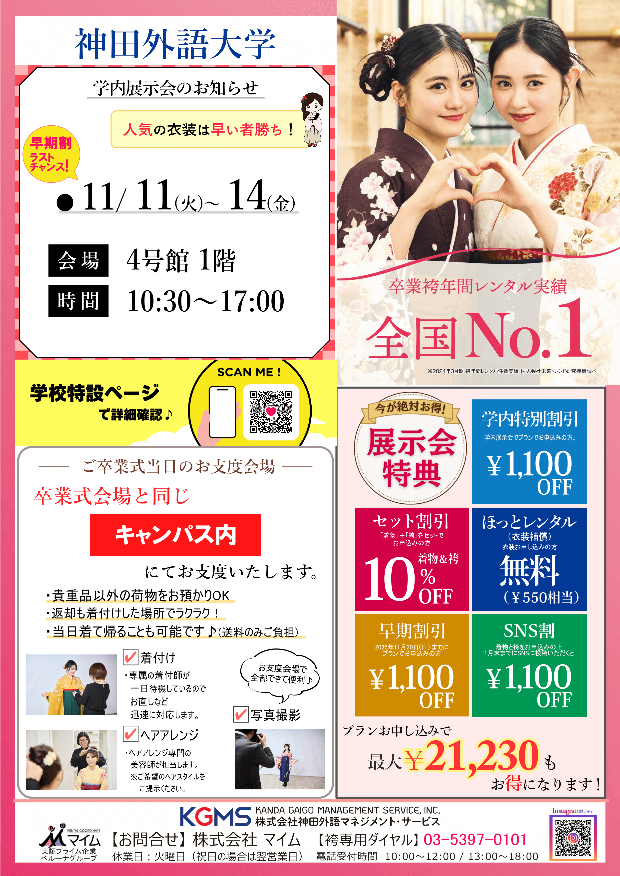 神田外語大学 ー 2026年卒業式レンタル袴情報 ー