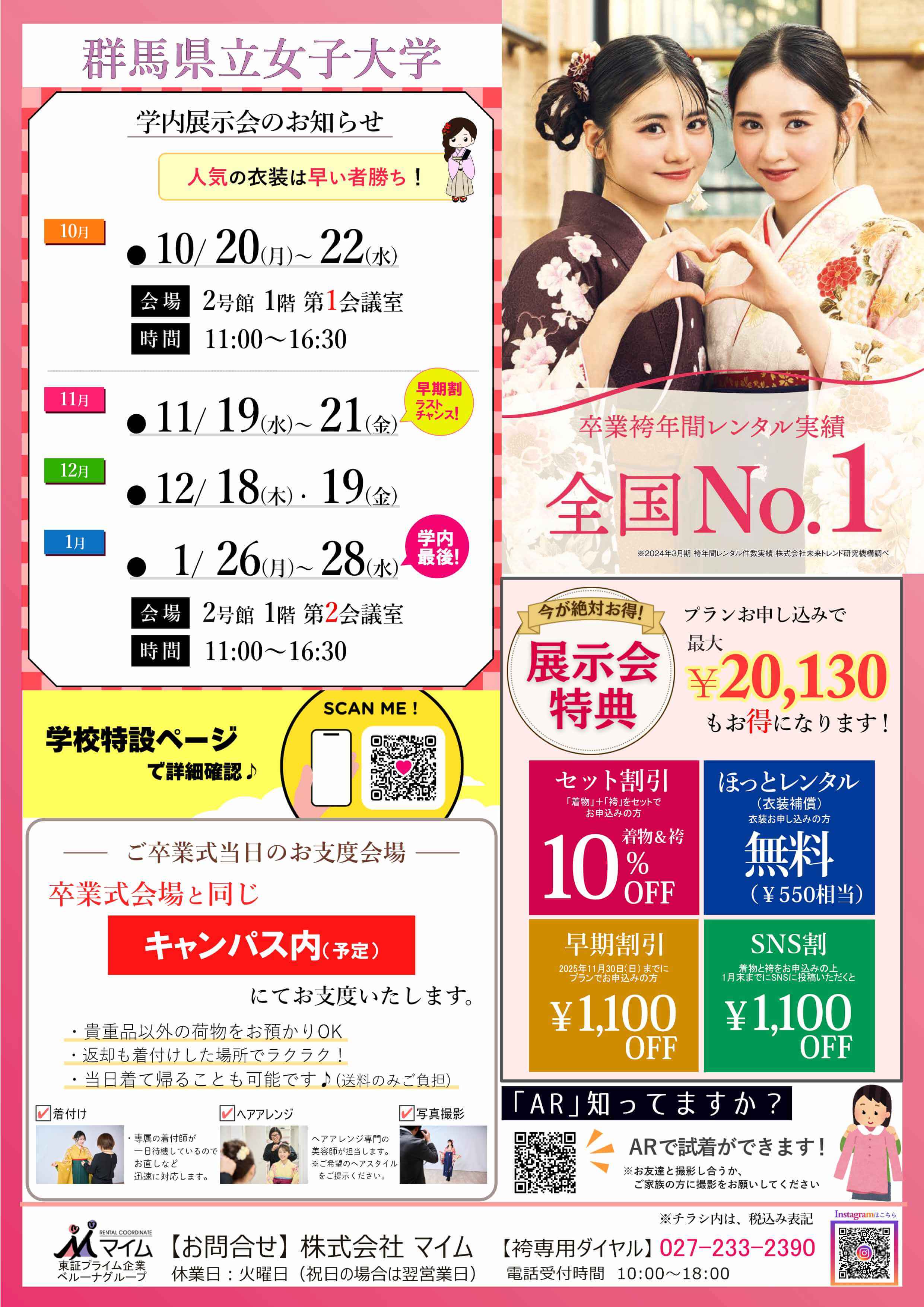 群馬県立女子大学 ー 2026年卒業式レンタル袴情報 ー