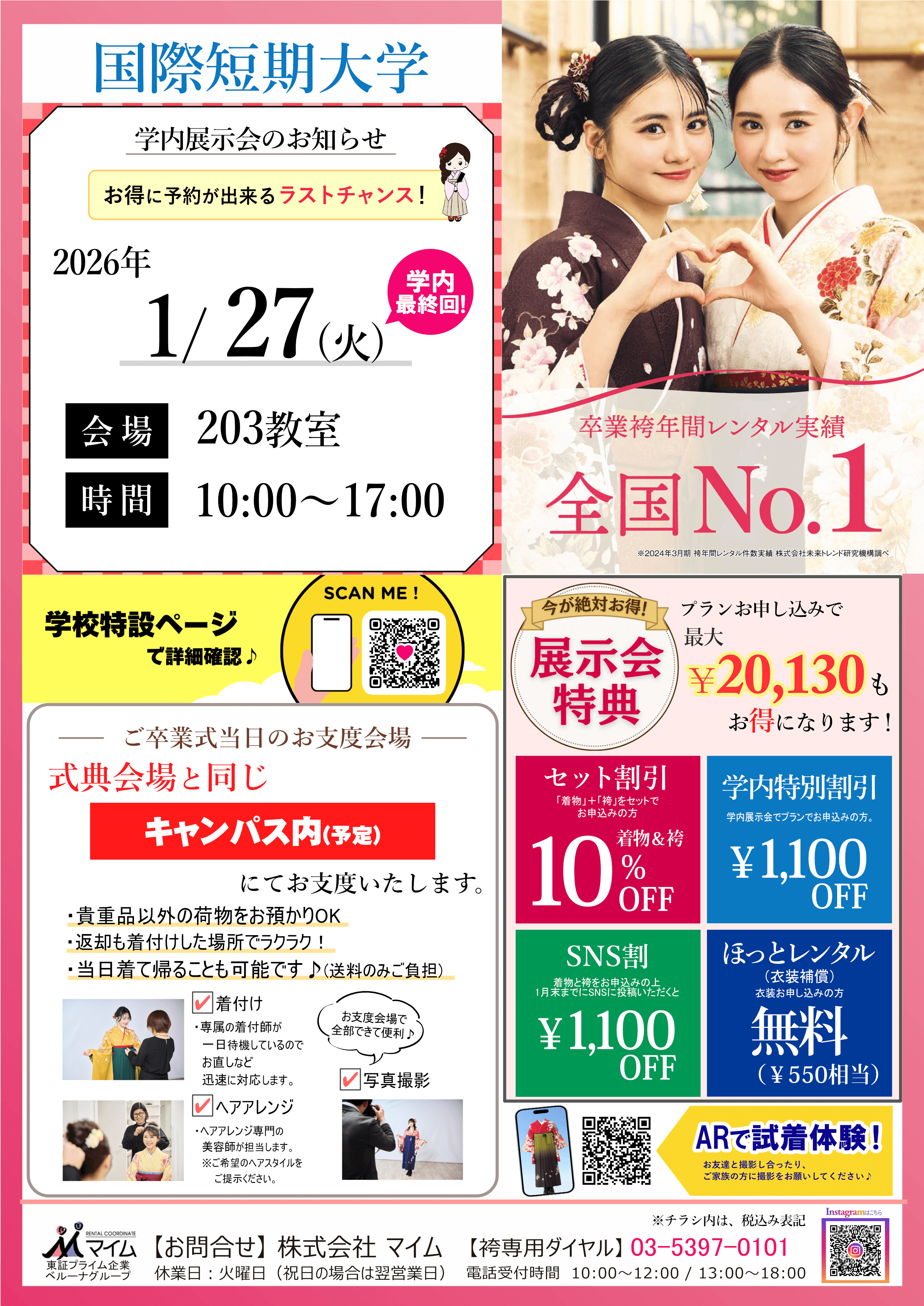 国際短期大学 ー 2026年卒業式レンタル袴情報 ー