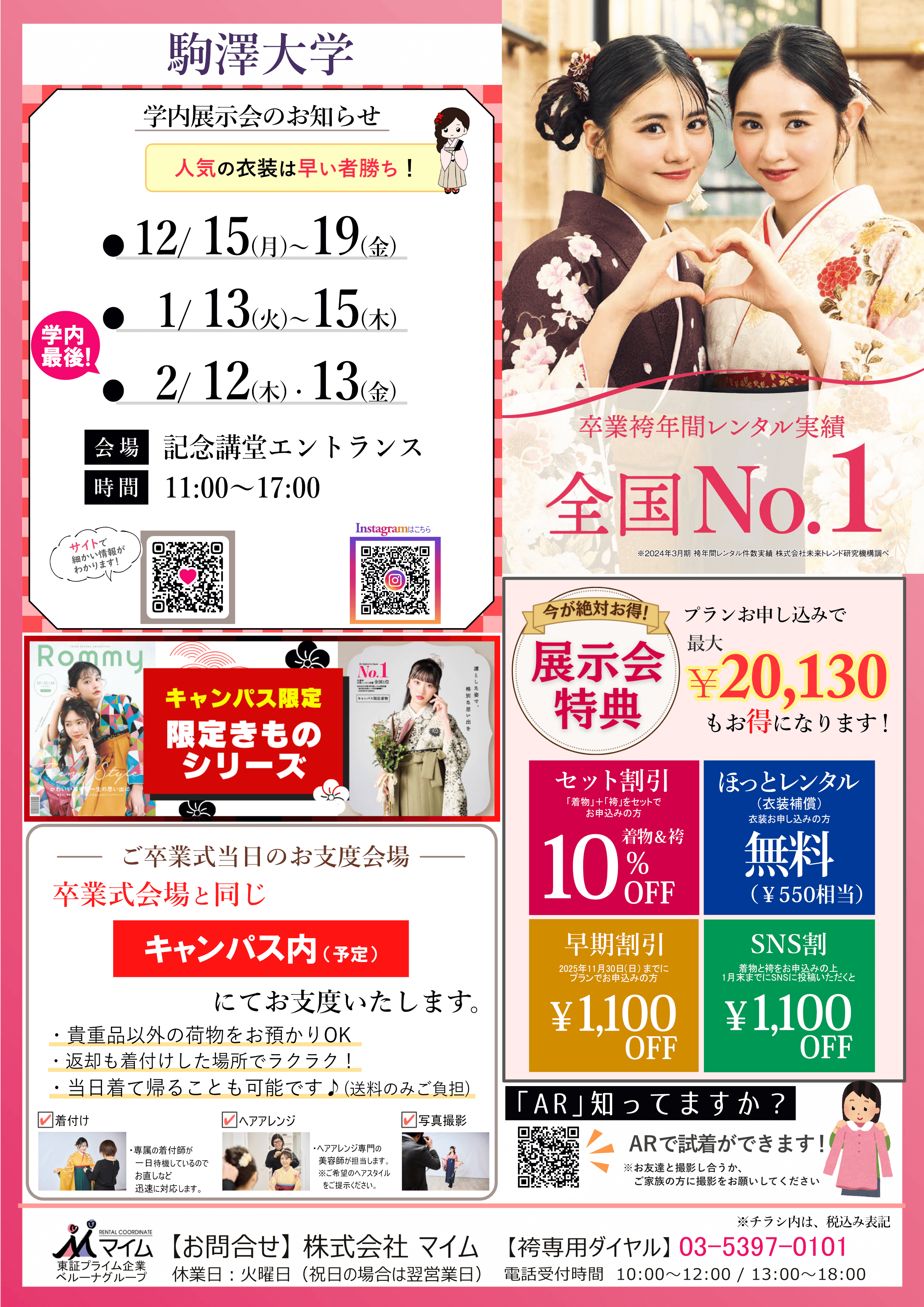 駒澤大学 ー 2026年卒業式レンタル袴情報 ー
