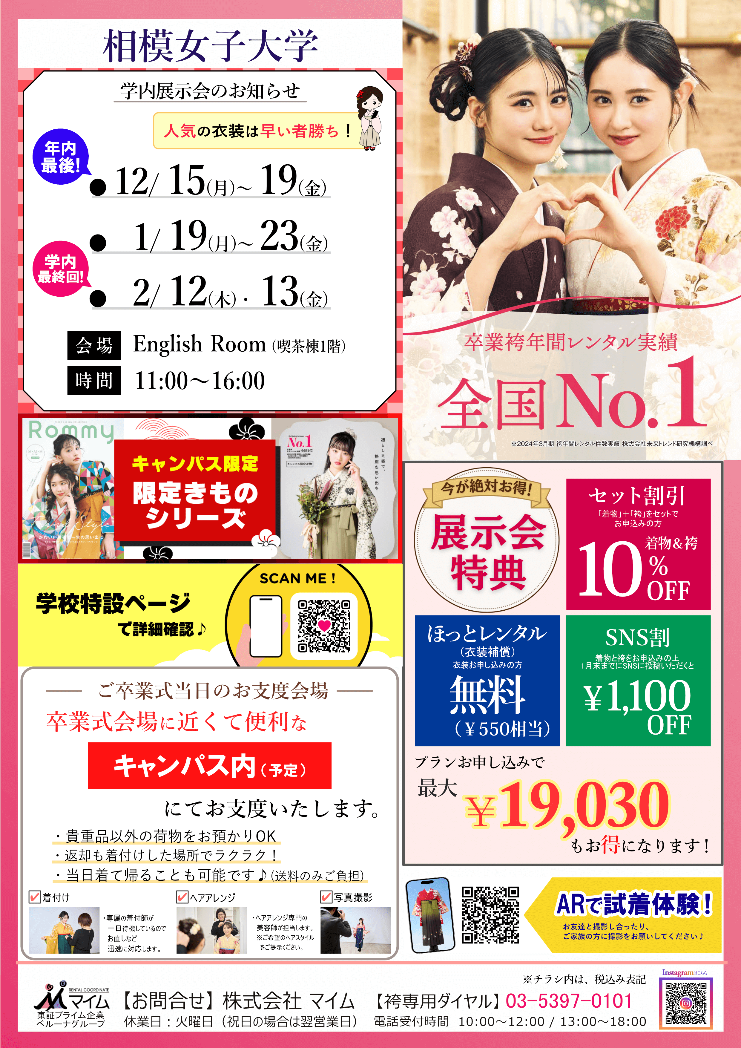 相模女子大学 ー 2026年卒業式レンタル袴情報 ー