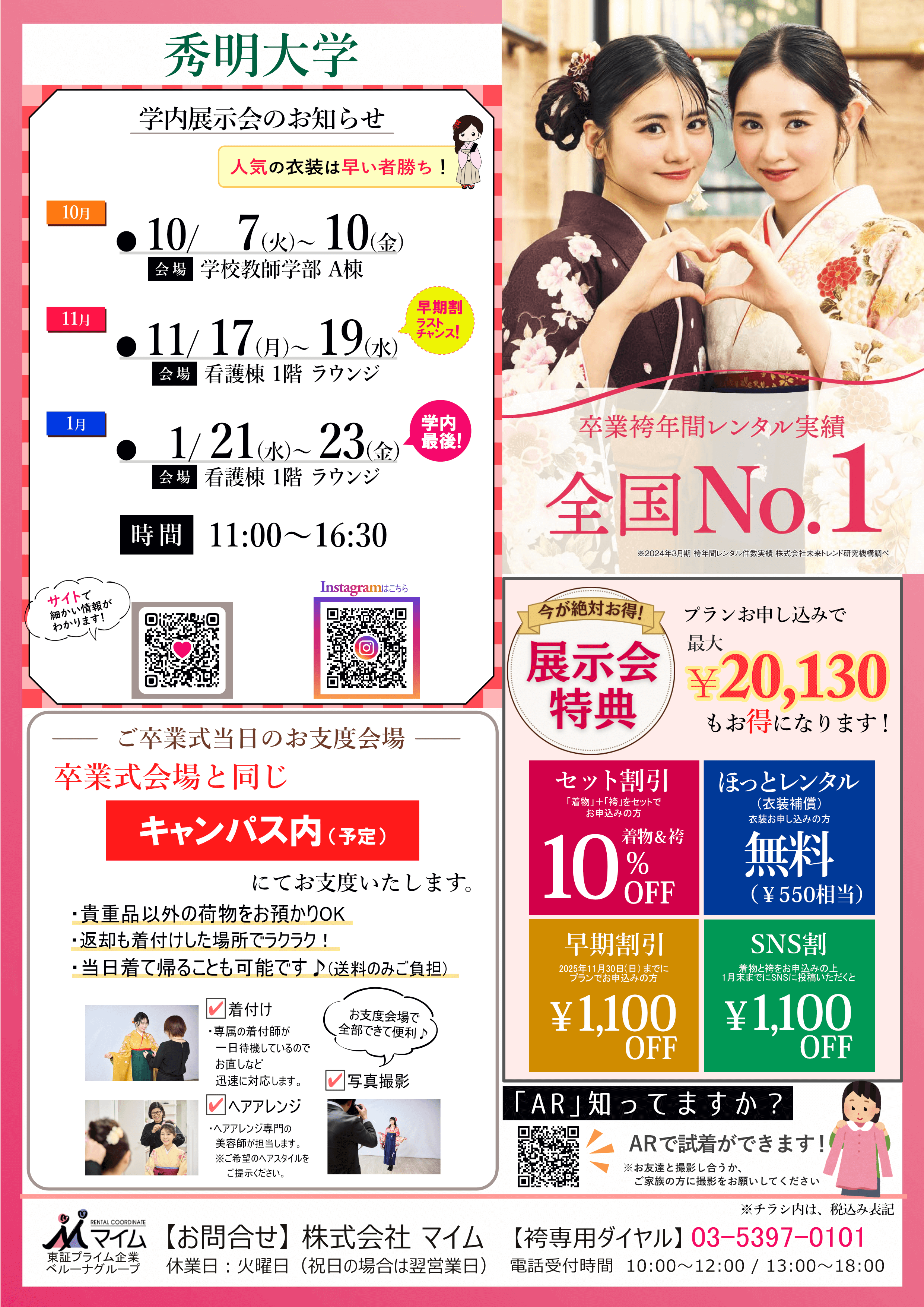 秀明大学 ー 2026年卒業式レンタル袴情報 ー