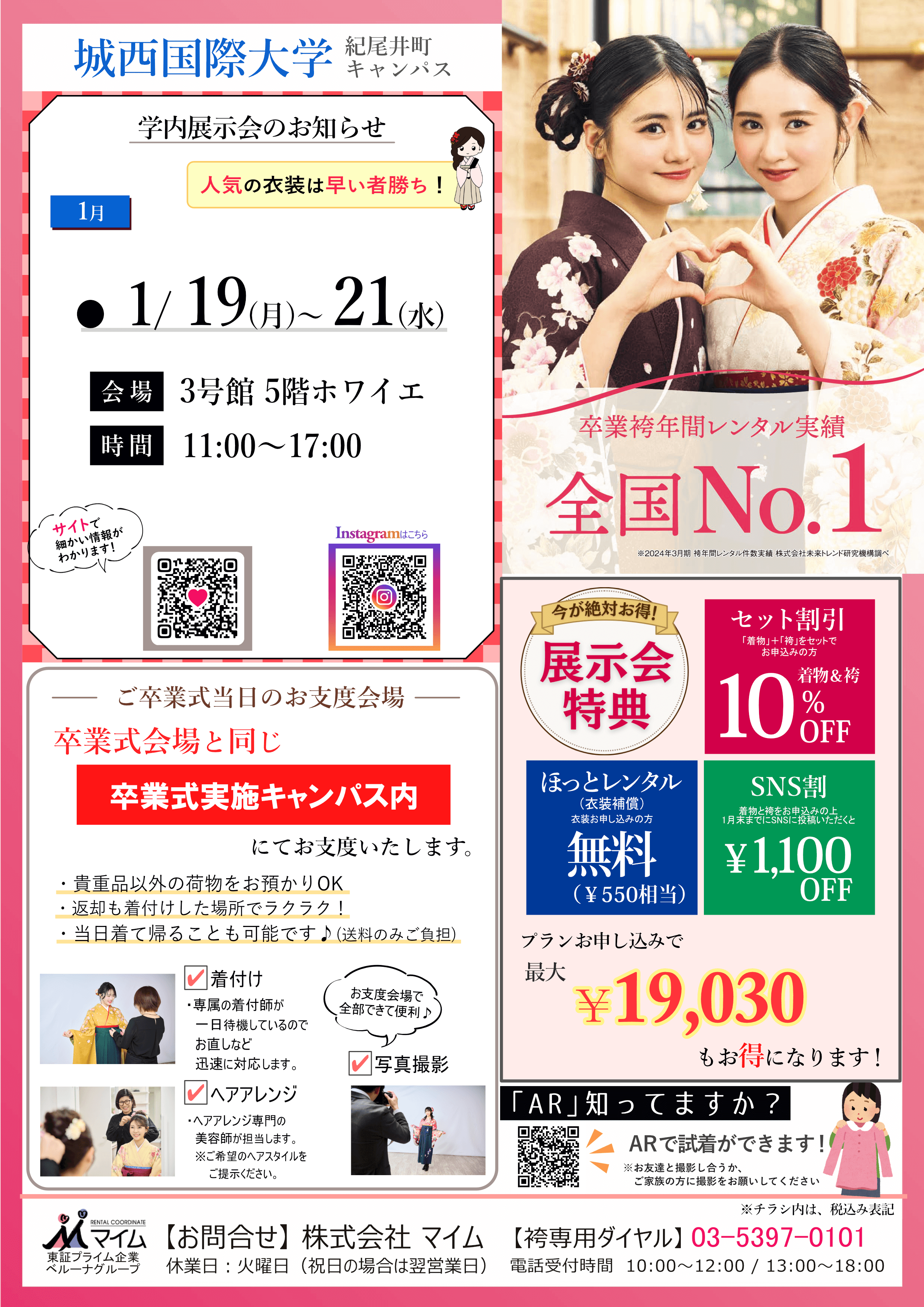 城西国際大学 紀尾井町 ー 2026年卒業式レンタル袴情報 ー