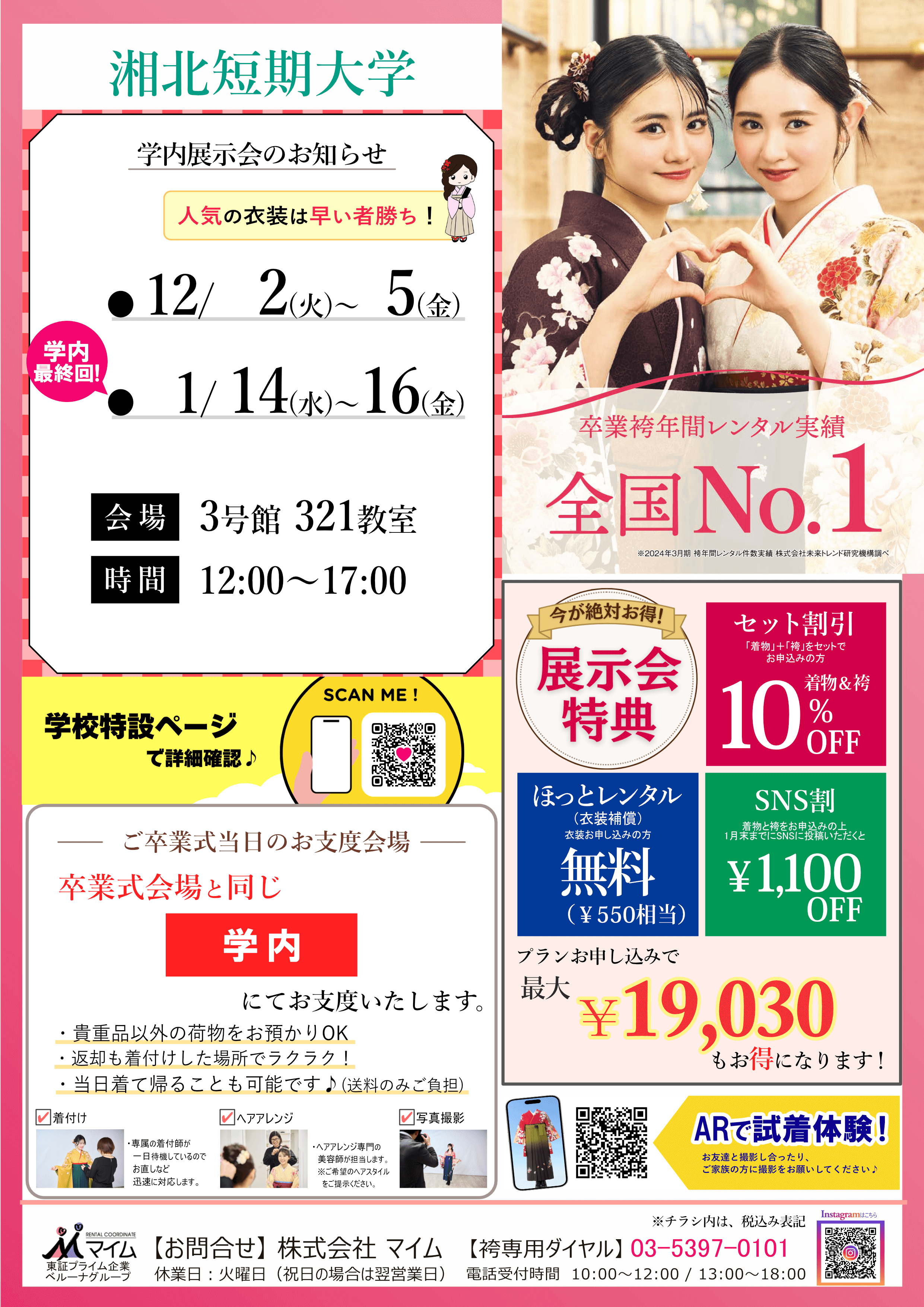 湘北短期大学 ー 2026年卒業式レンタル袴情報 ー