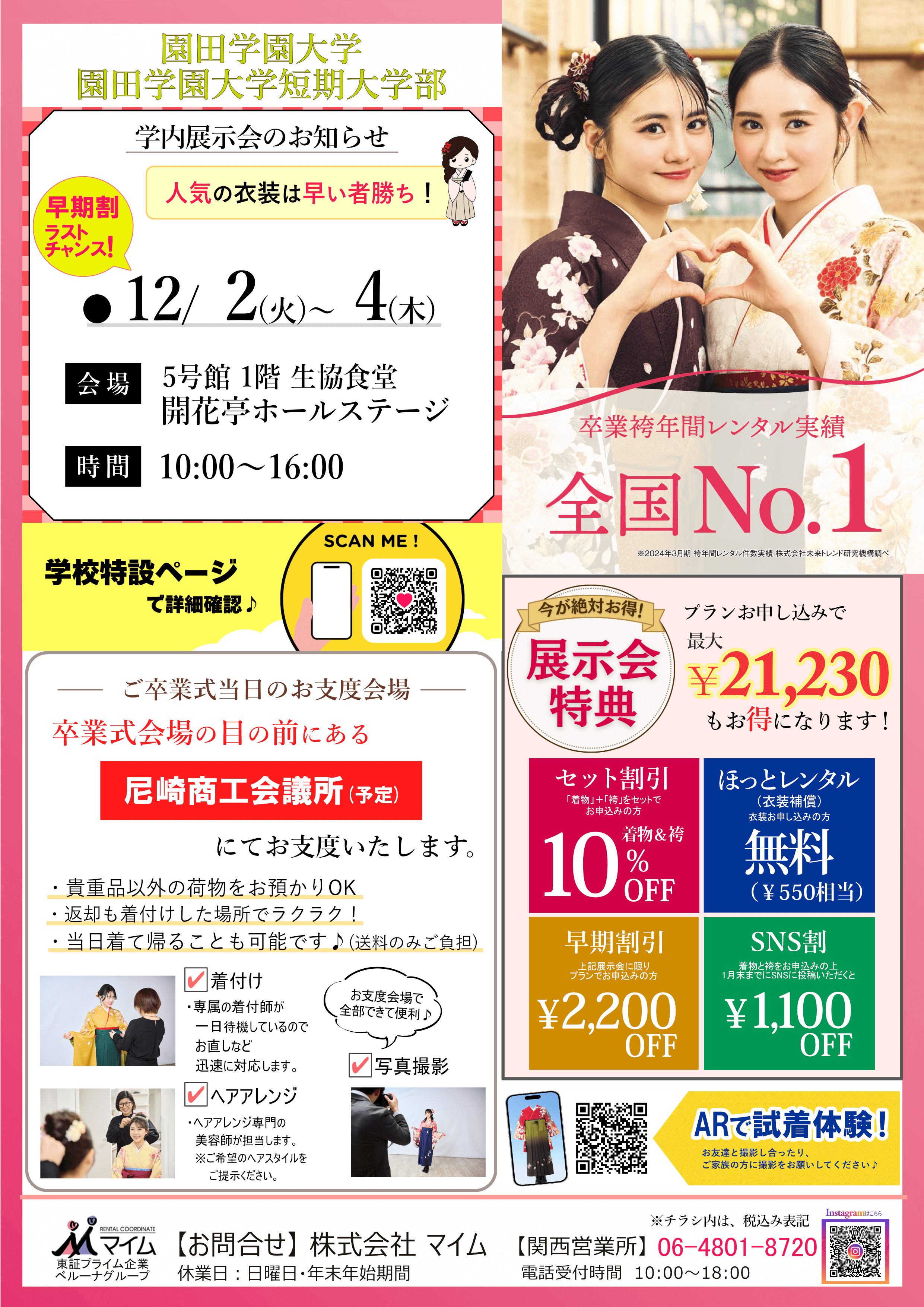 園田学園大学 ー 2026年卒業式レンタル袴情報 ー