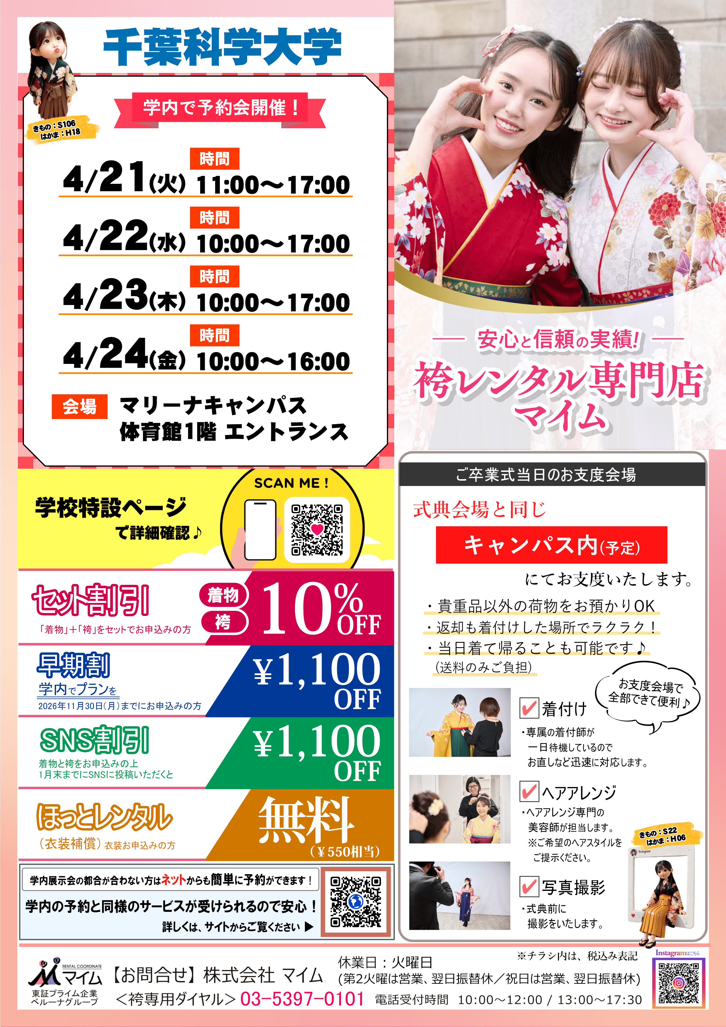千葉科学大学 ー 2027年卒業式レンタル袴情報 ー