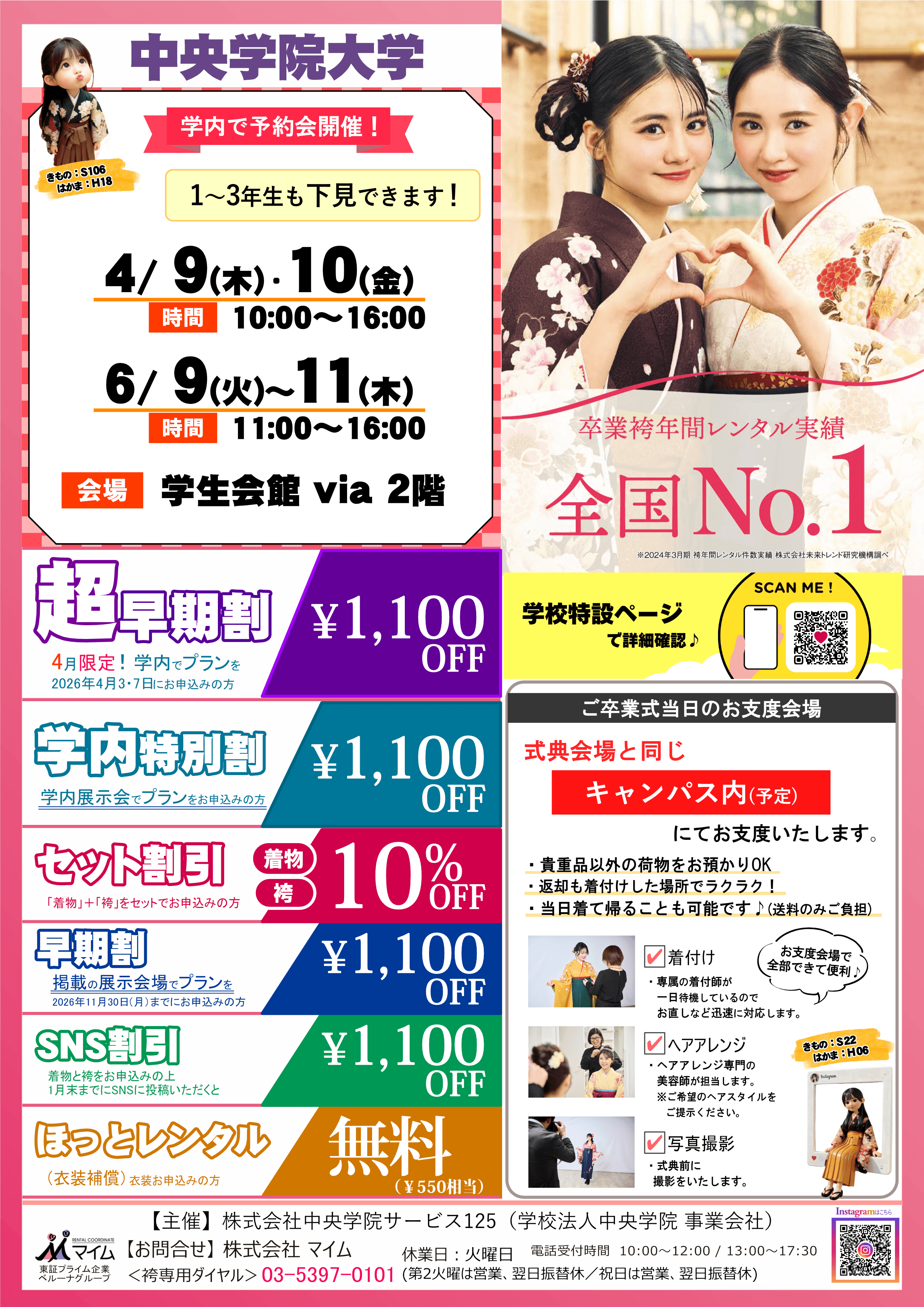 中央学院大学 ー 2027年卒業式レンタル袴情報 ー