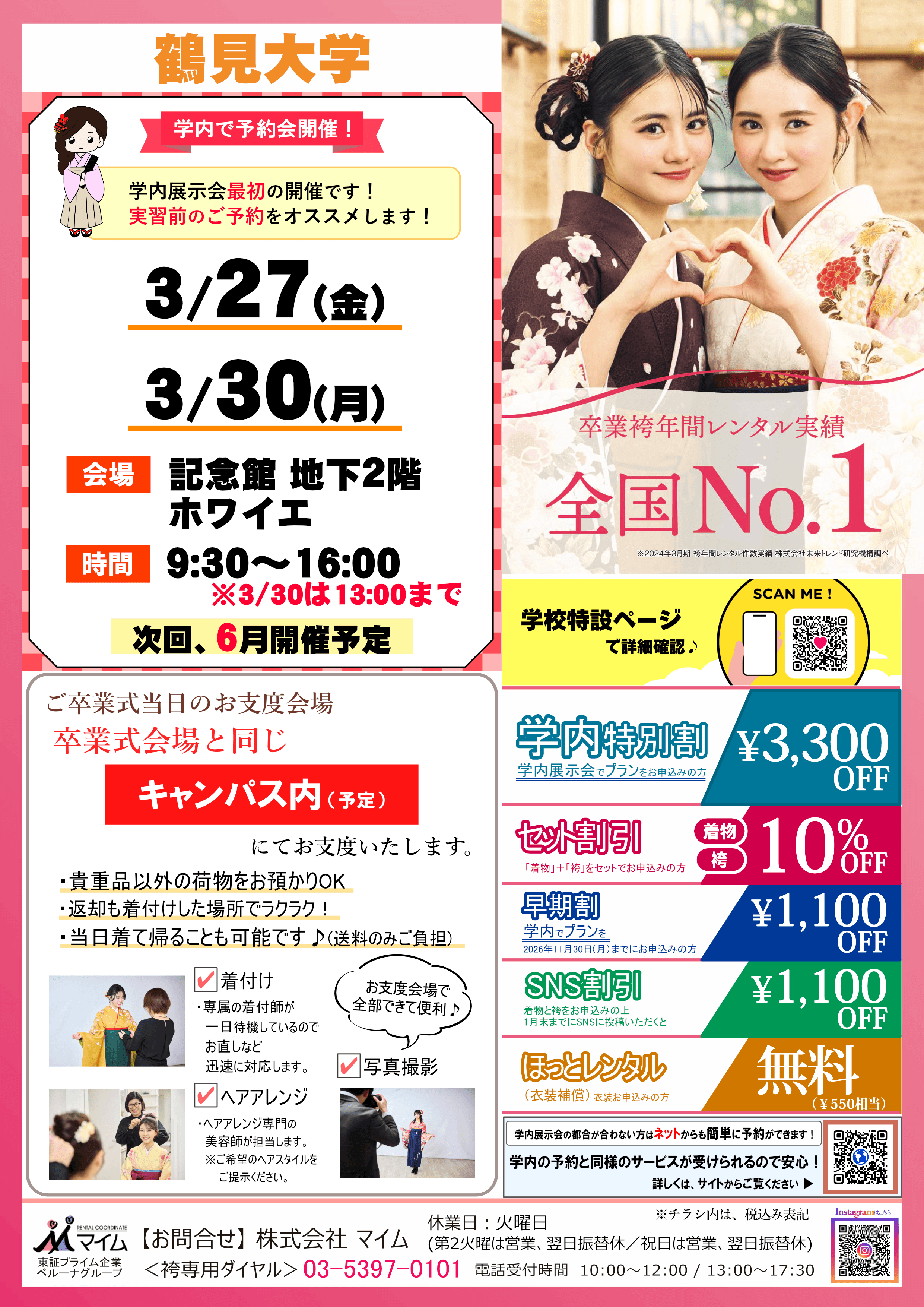 鶴見大学 ー 2027年卒業式レンタル袴情報 ー