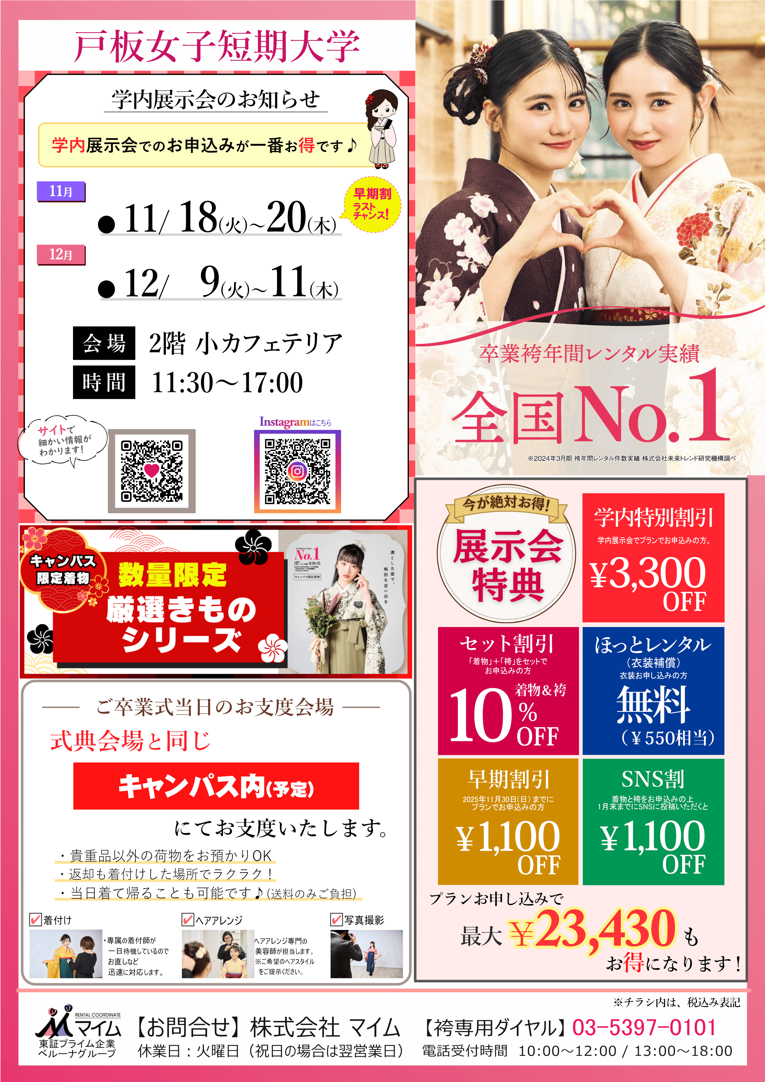 戸板女子短期大学 ー 2026年卒業式レンタル袴情報 ー