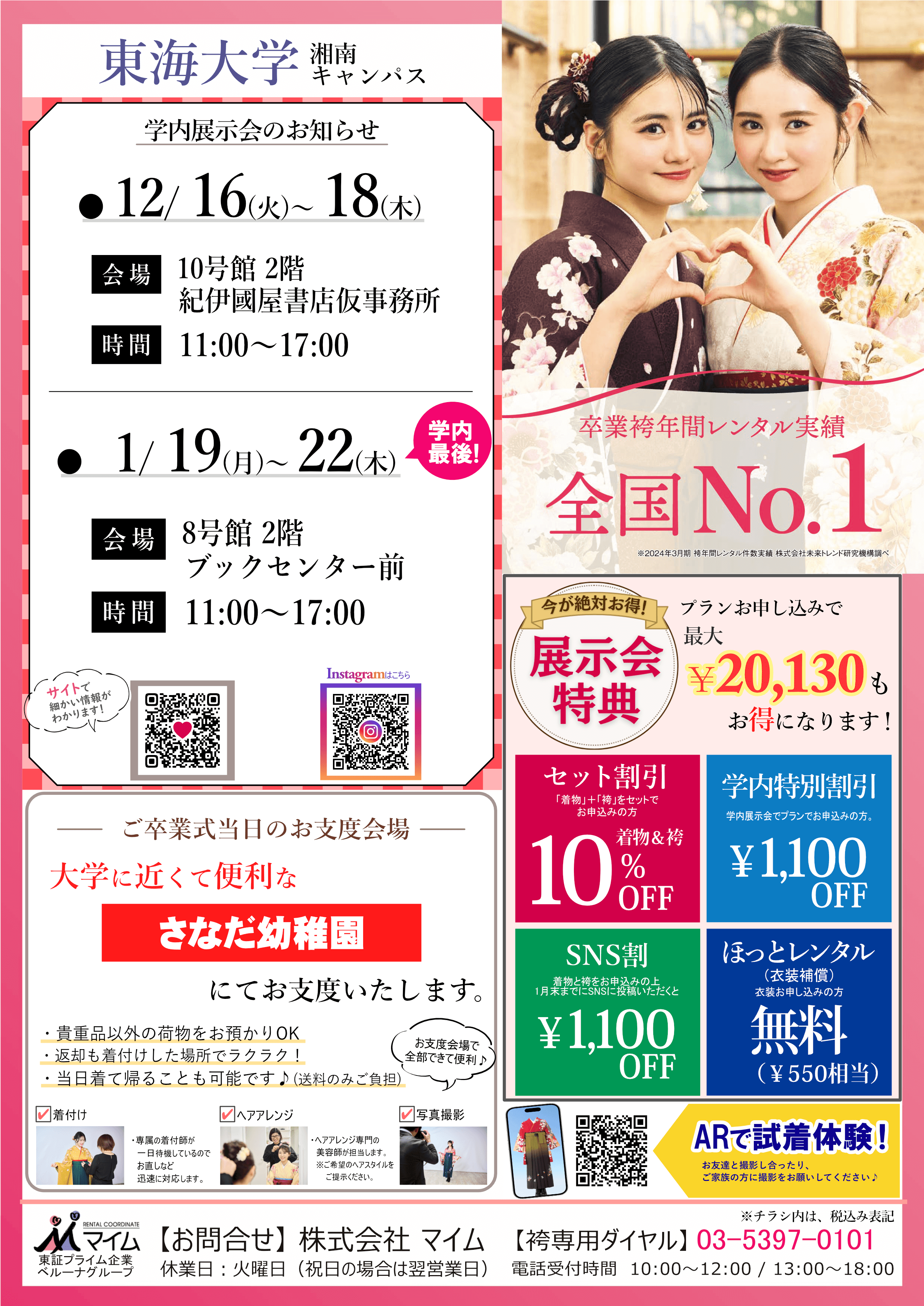 東海大学 湘南 ー 2026年卒業式レンタル袴情報 ー