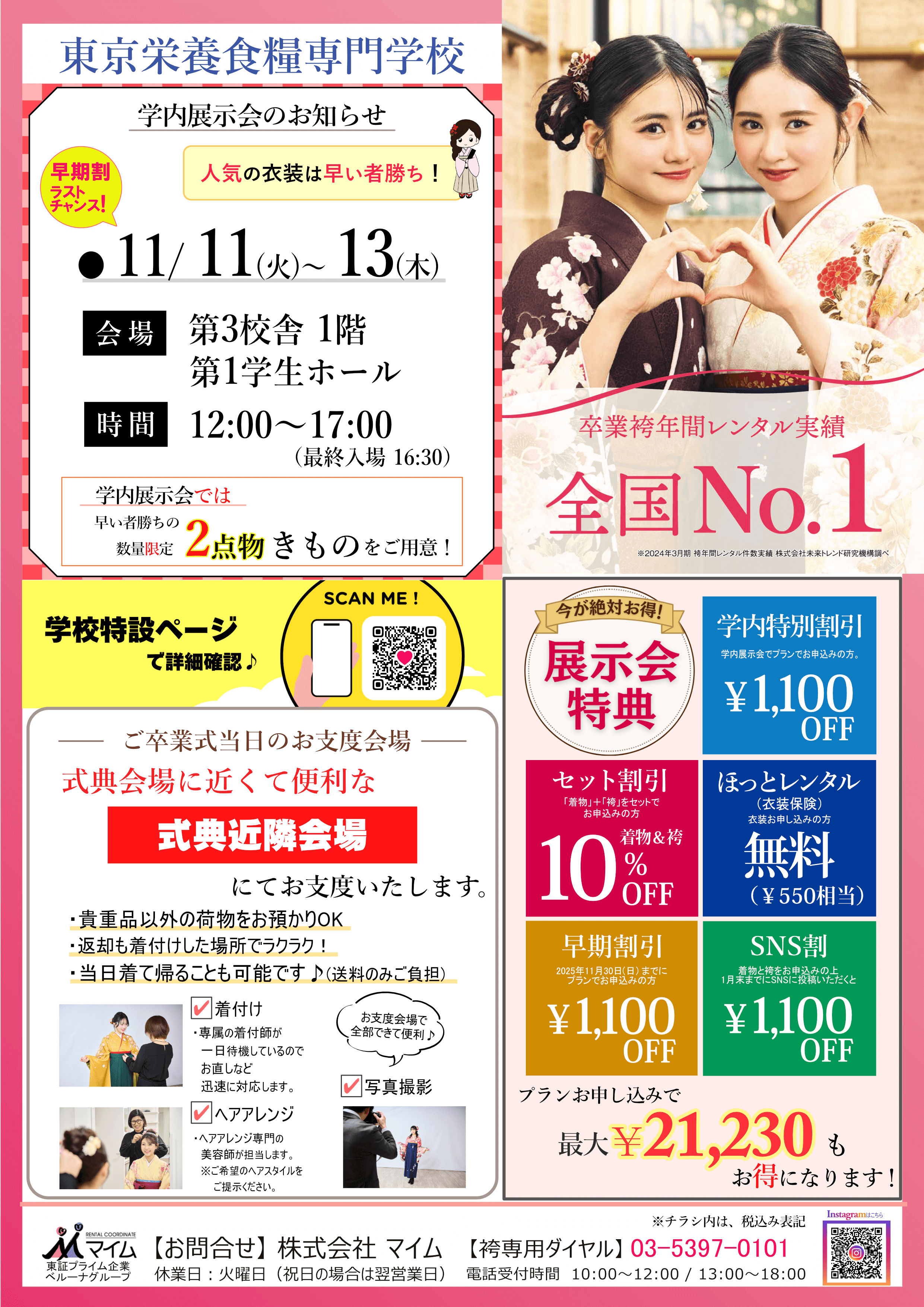 東京栄養食糧専門学校 ー 2026年卒業式レンタル袴情報 ー