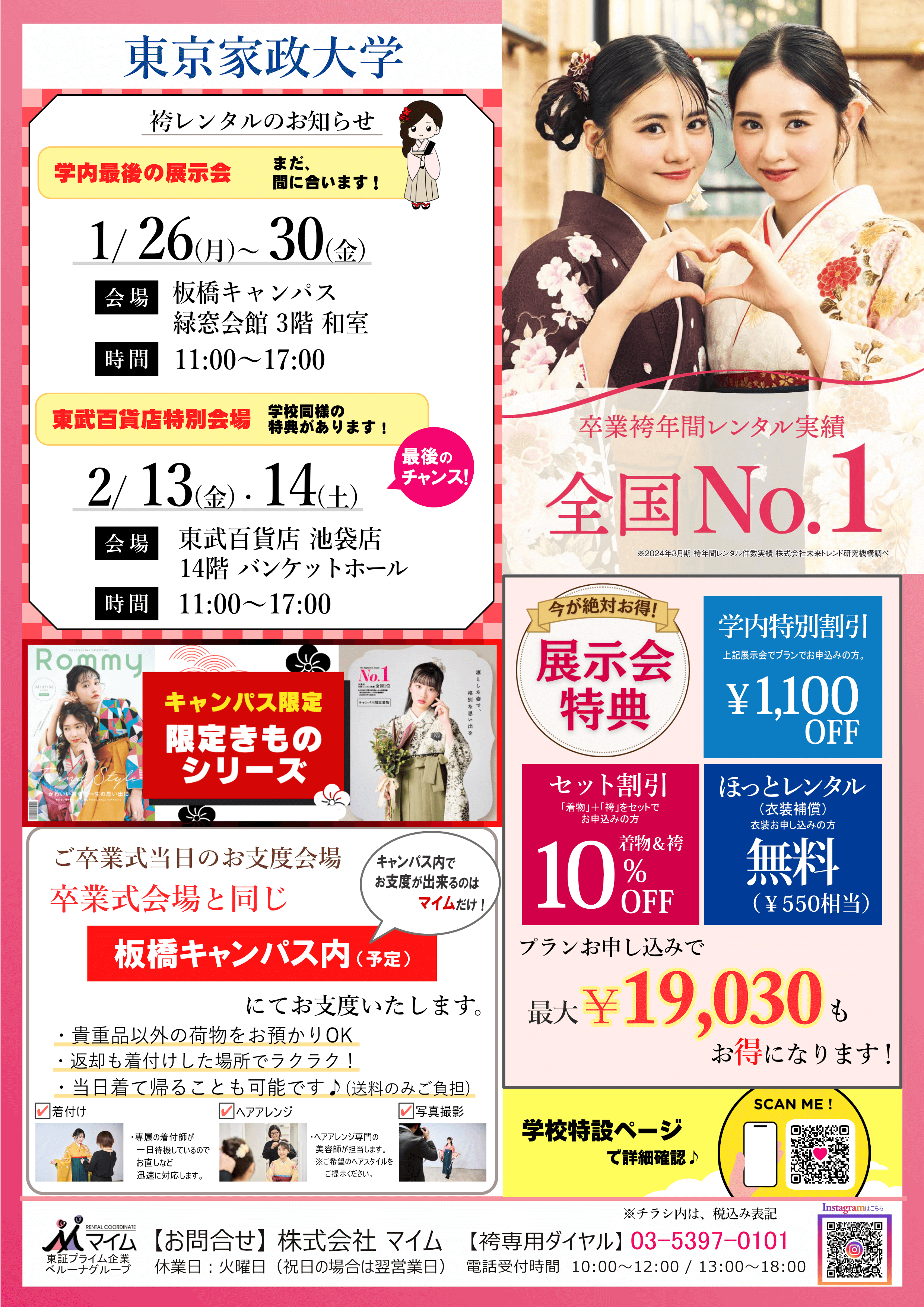 東京家政大学 狭山 ー 2026年卒業式レンタル袴情報 ー