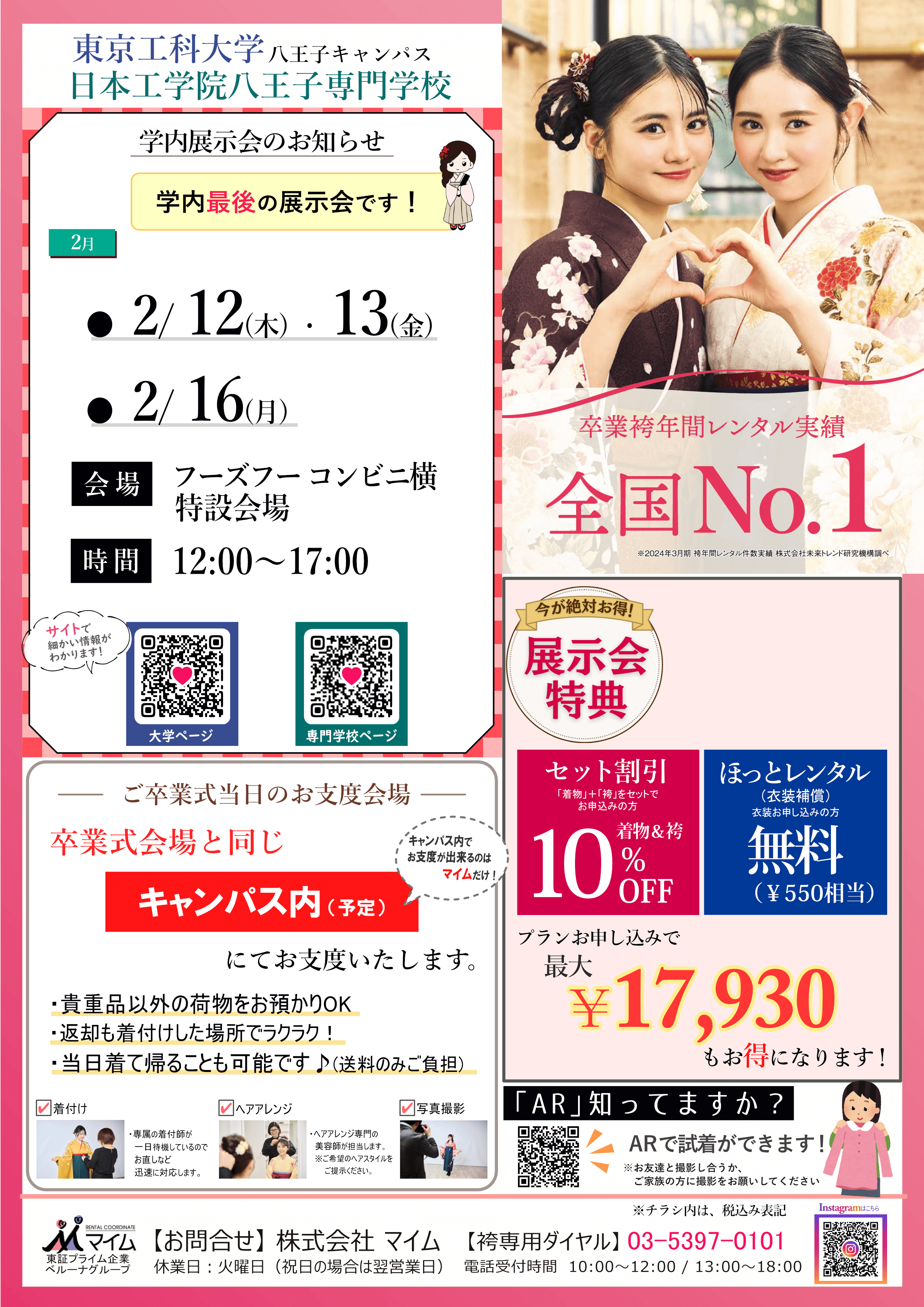 東京工科大学 八王子 ー 2026年卒業式レンタル袴情報 ー