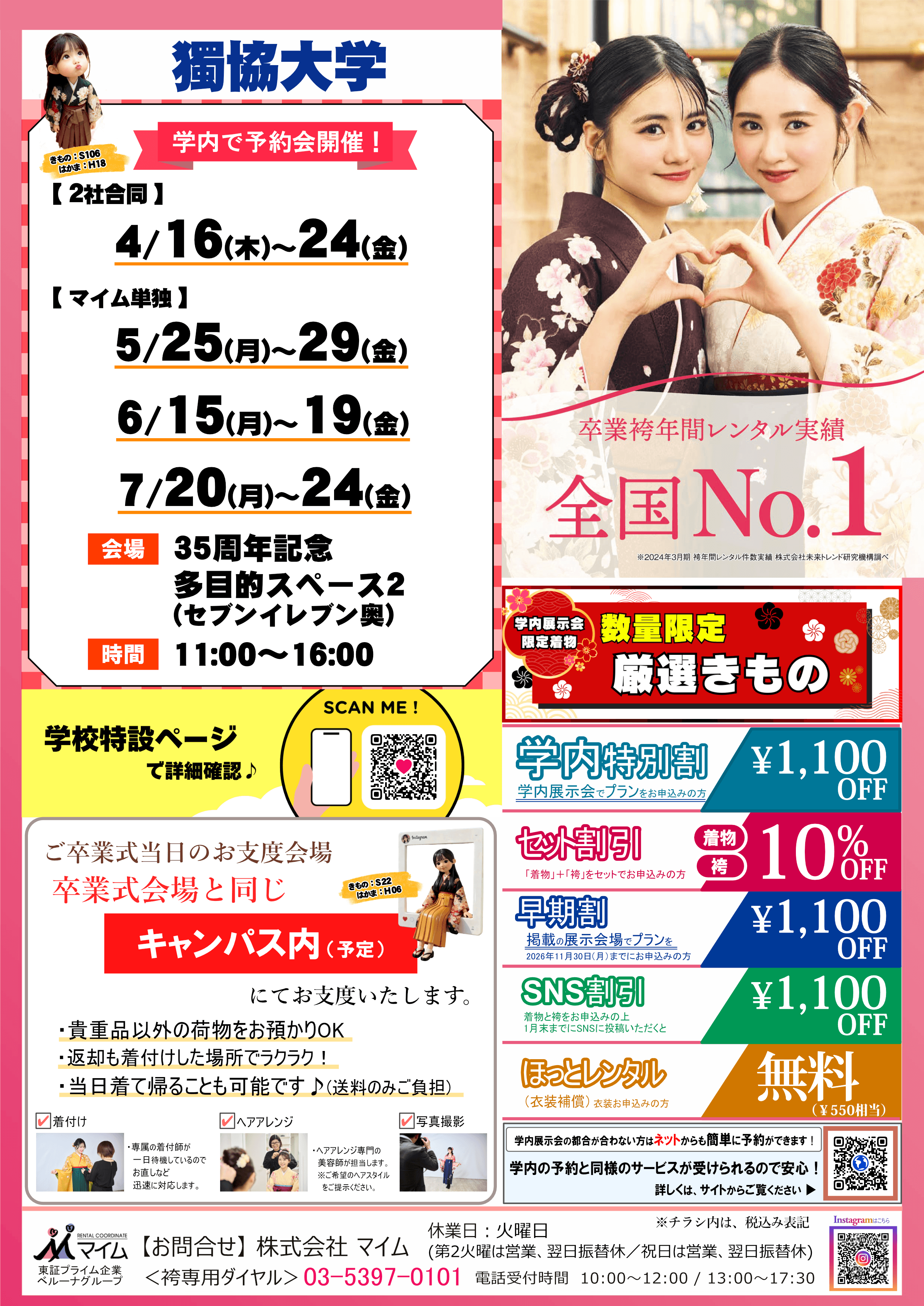獨協大学 ー 2027年卒業式レンタル袴情報 ー