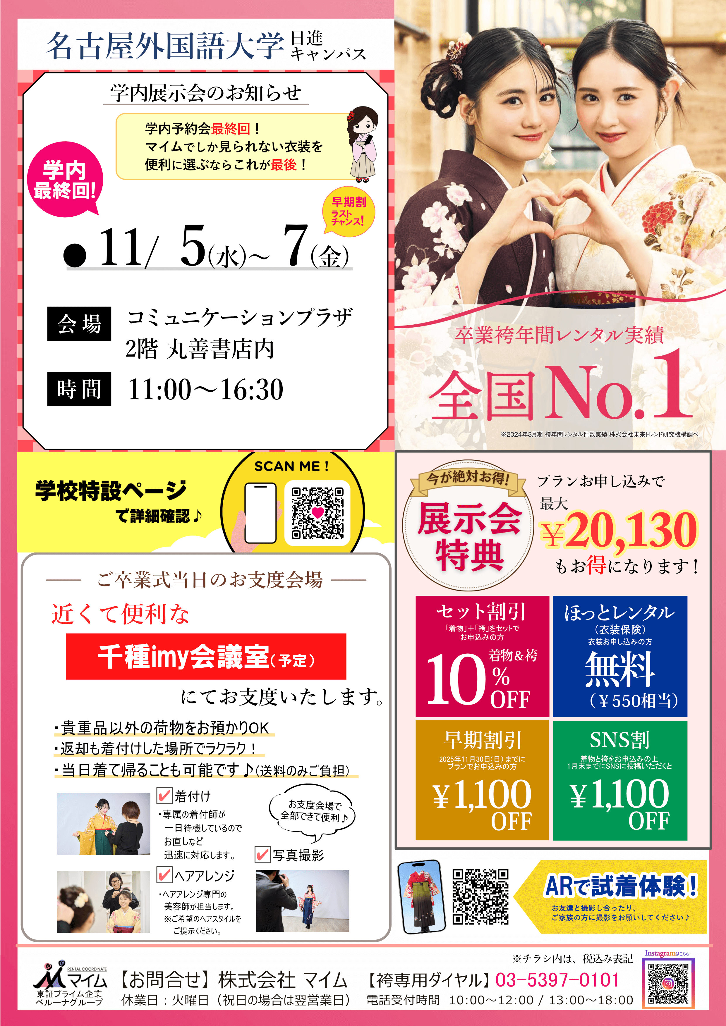 名古屋外国語大学 日進 ー 2026年卒業式レンタル袴情報 ー