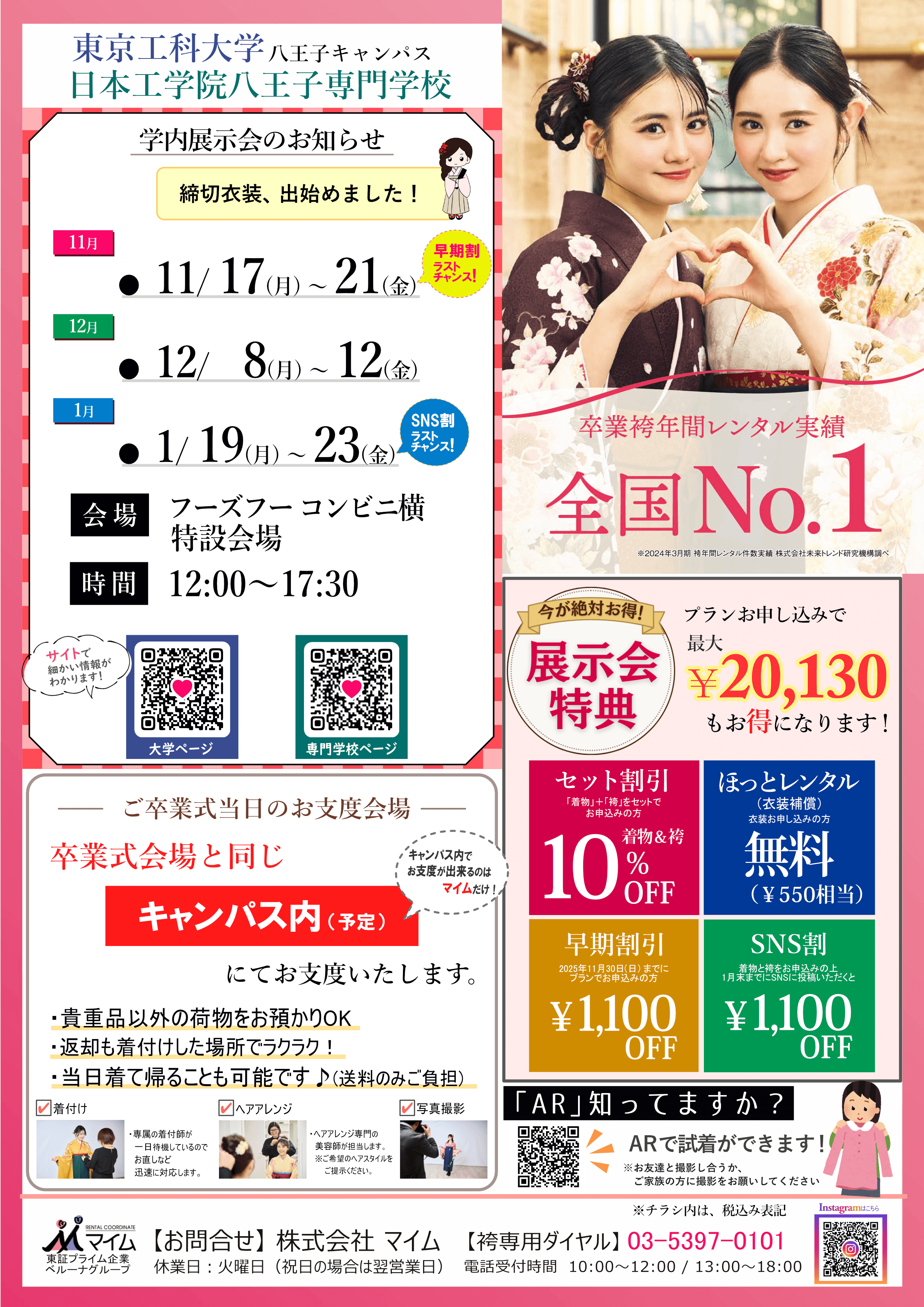 日本工学院八王子専門学校 ー 2026年卒業式レンタル袴情報 ー