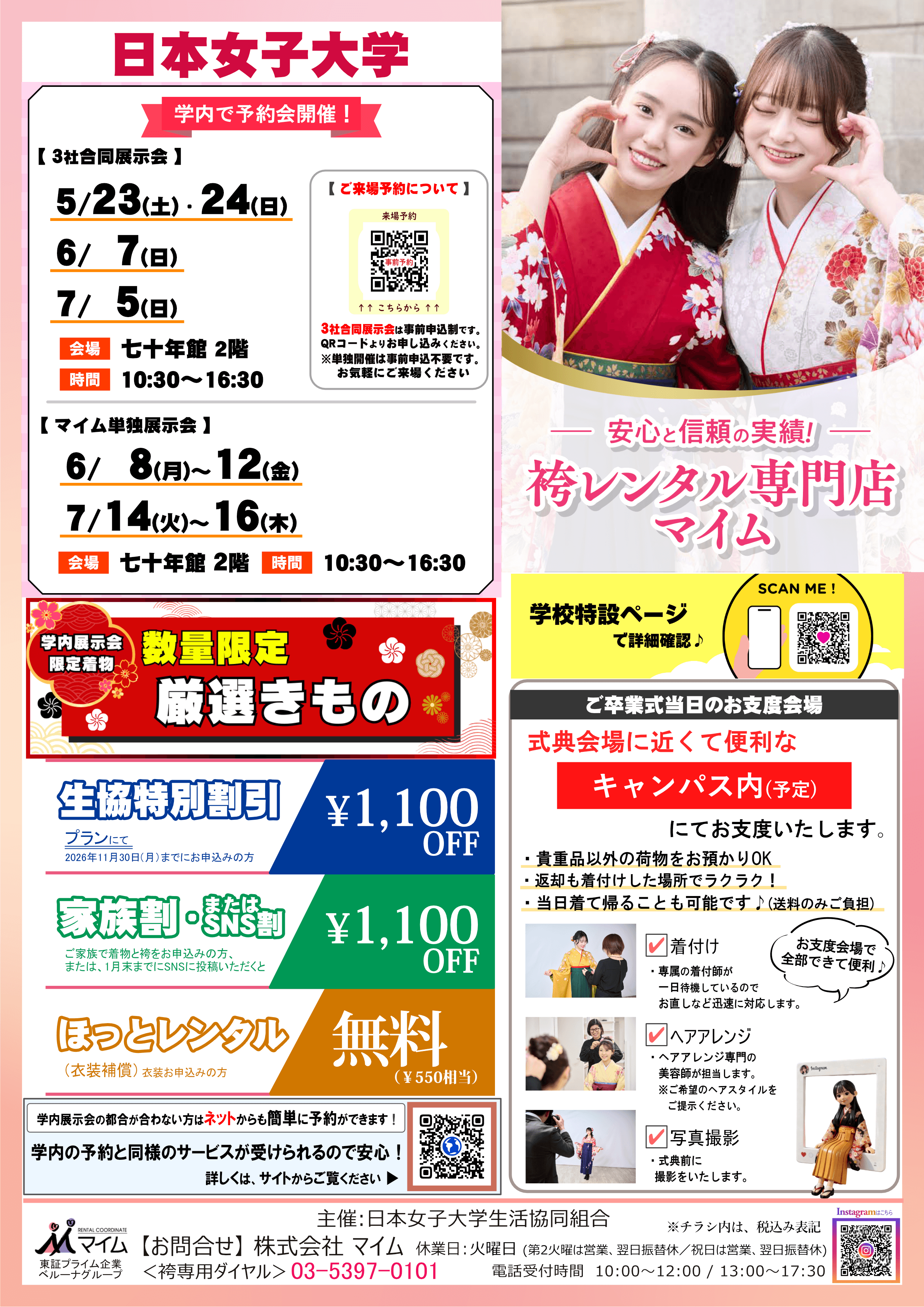 日本女子大学 目白 ー 2027年卒業式レンタル袴情報 ー
