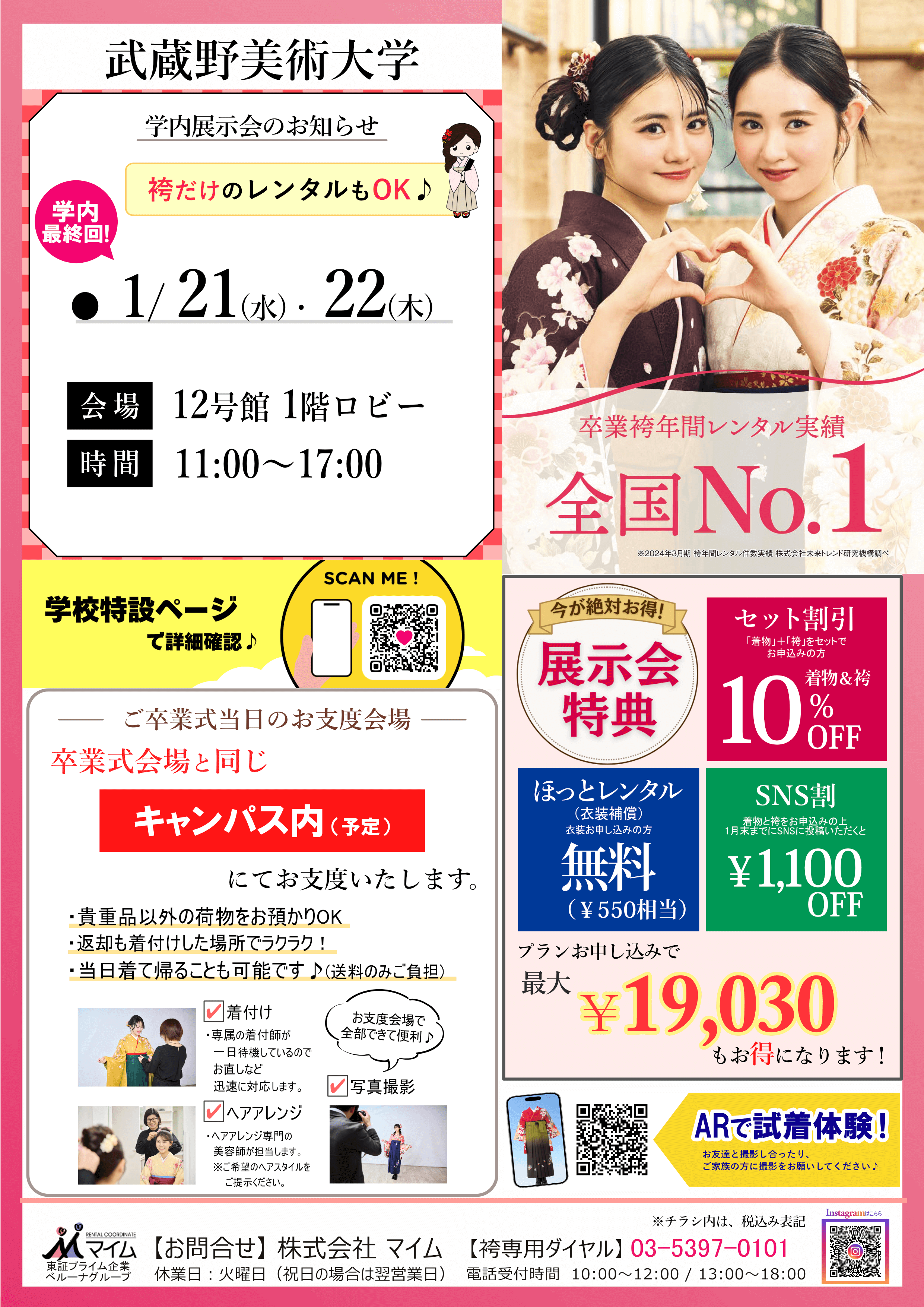 武蔵野美術大学 ー 2026年卒業式レンタル袴情報 ー