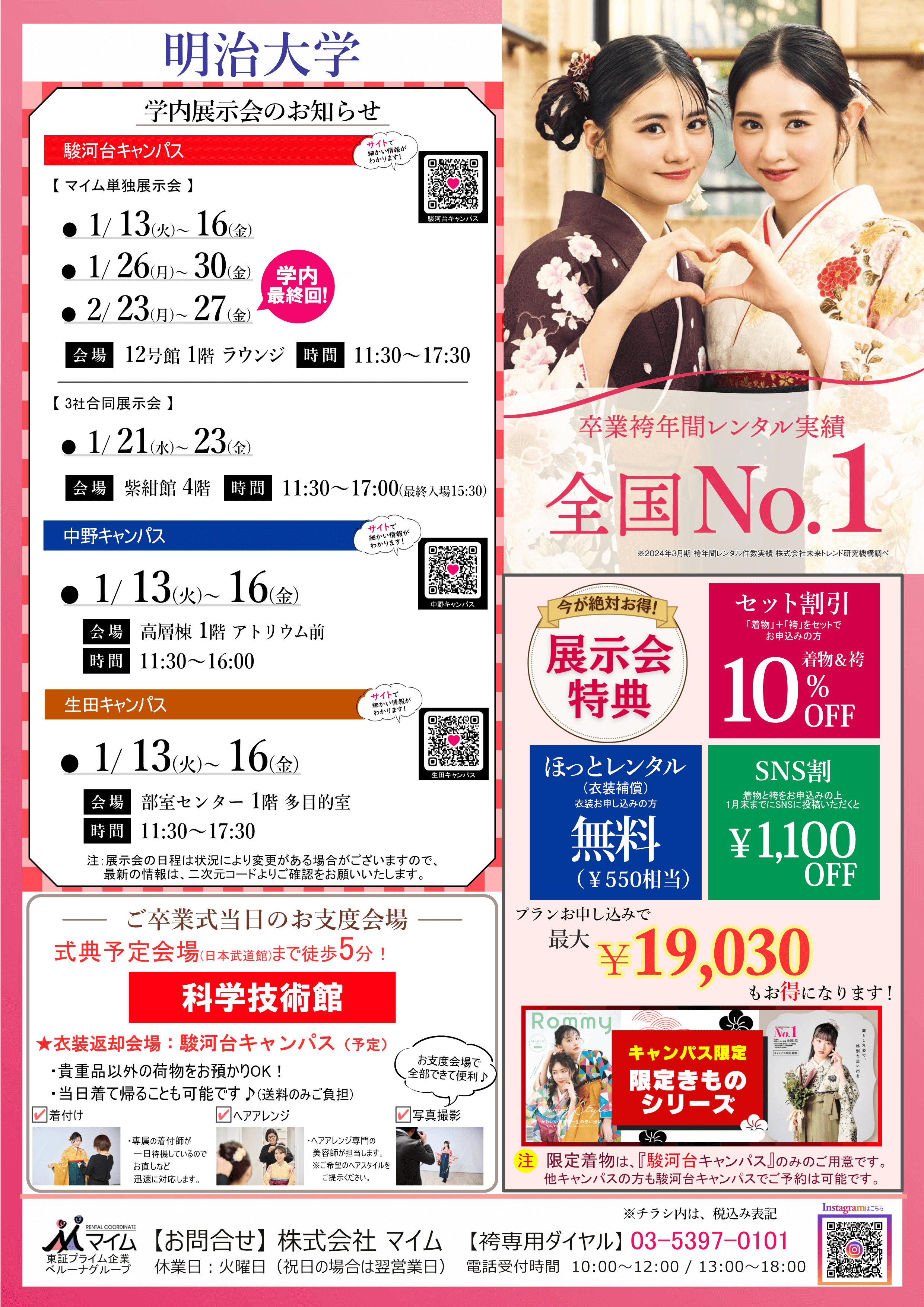 明治大学 生田 ー 2026年卒業式レンタル袴情報 ー