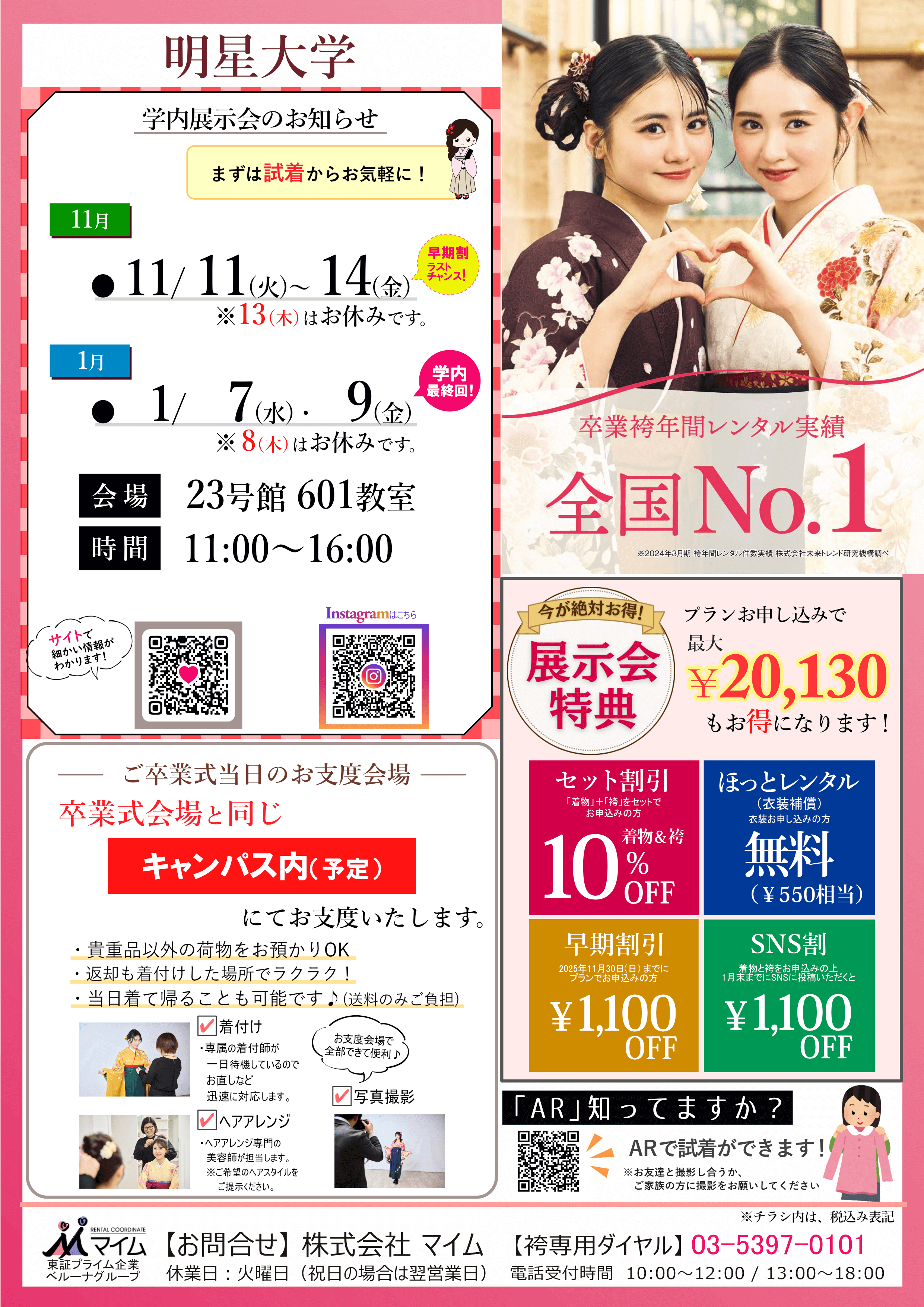 明星大学 日野 ー 2026年卒業式レンタル袴情報 ー