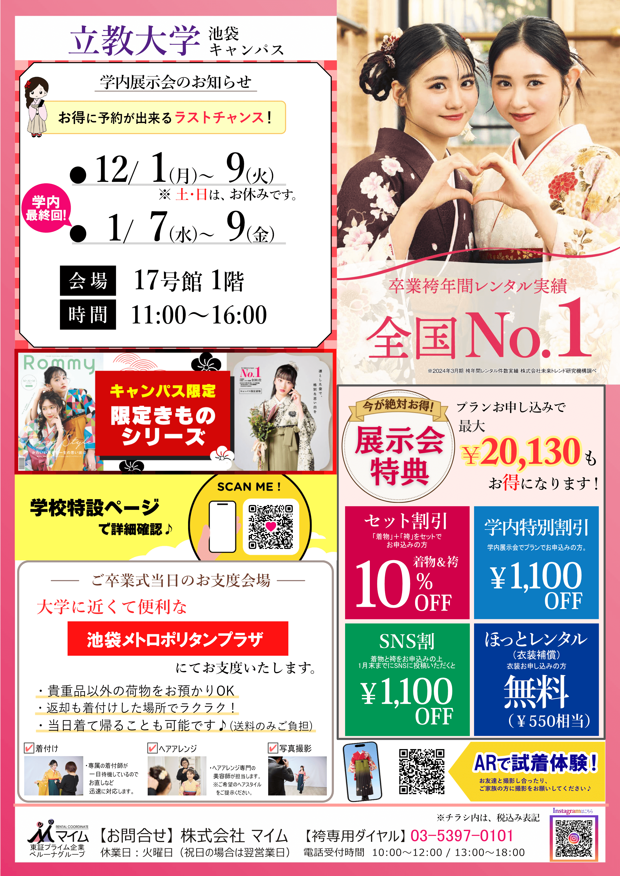 自分の学校の展示会スケジュールが分かったら、事前にマイムの衣装一覧ページから好きな着物をチェックしてみよう!
