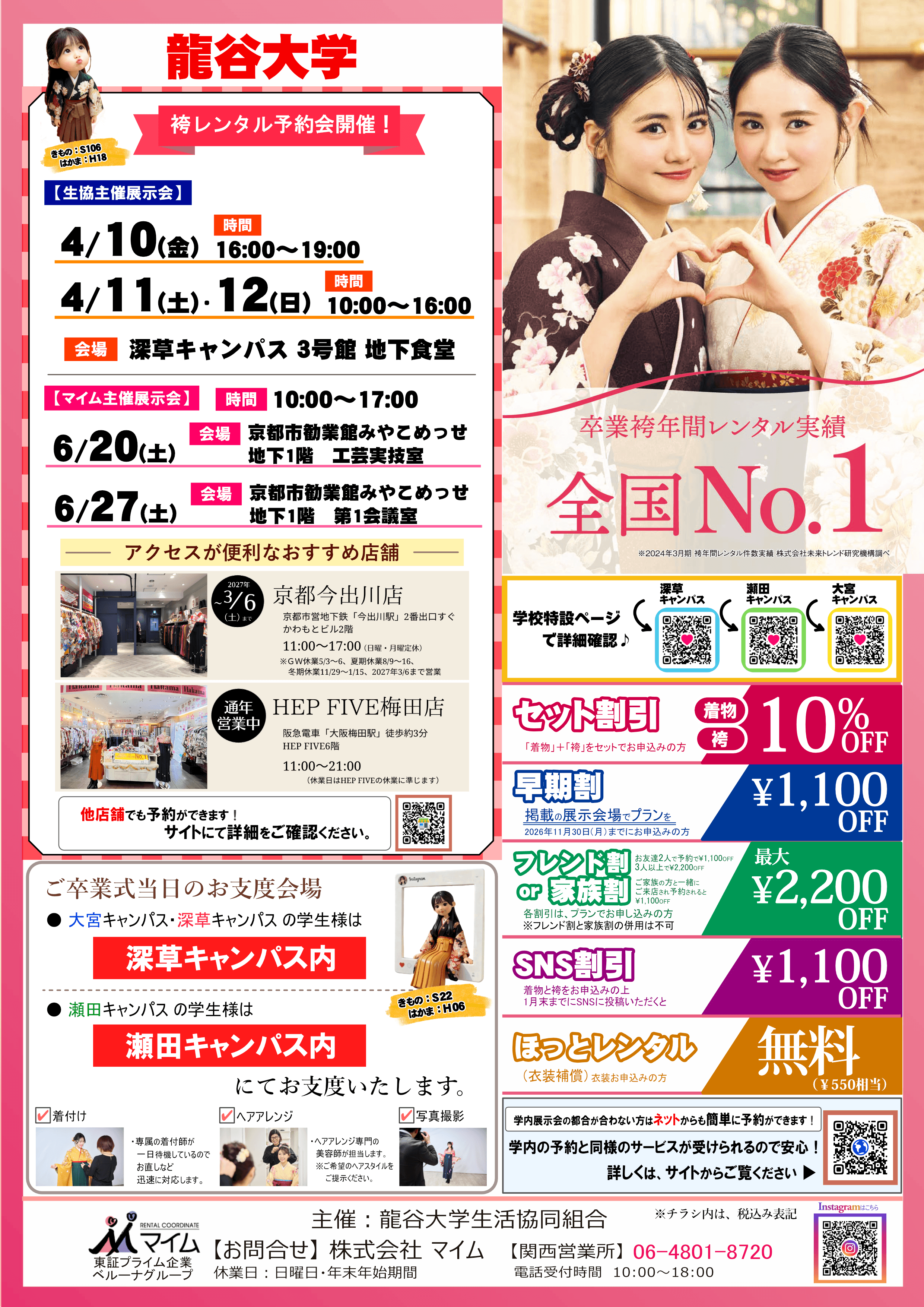 龍谷大学 瀬田 ー 2026年卒業式レンタル袴情報 ー