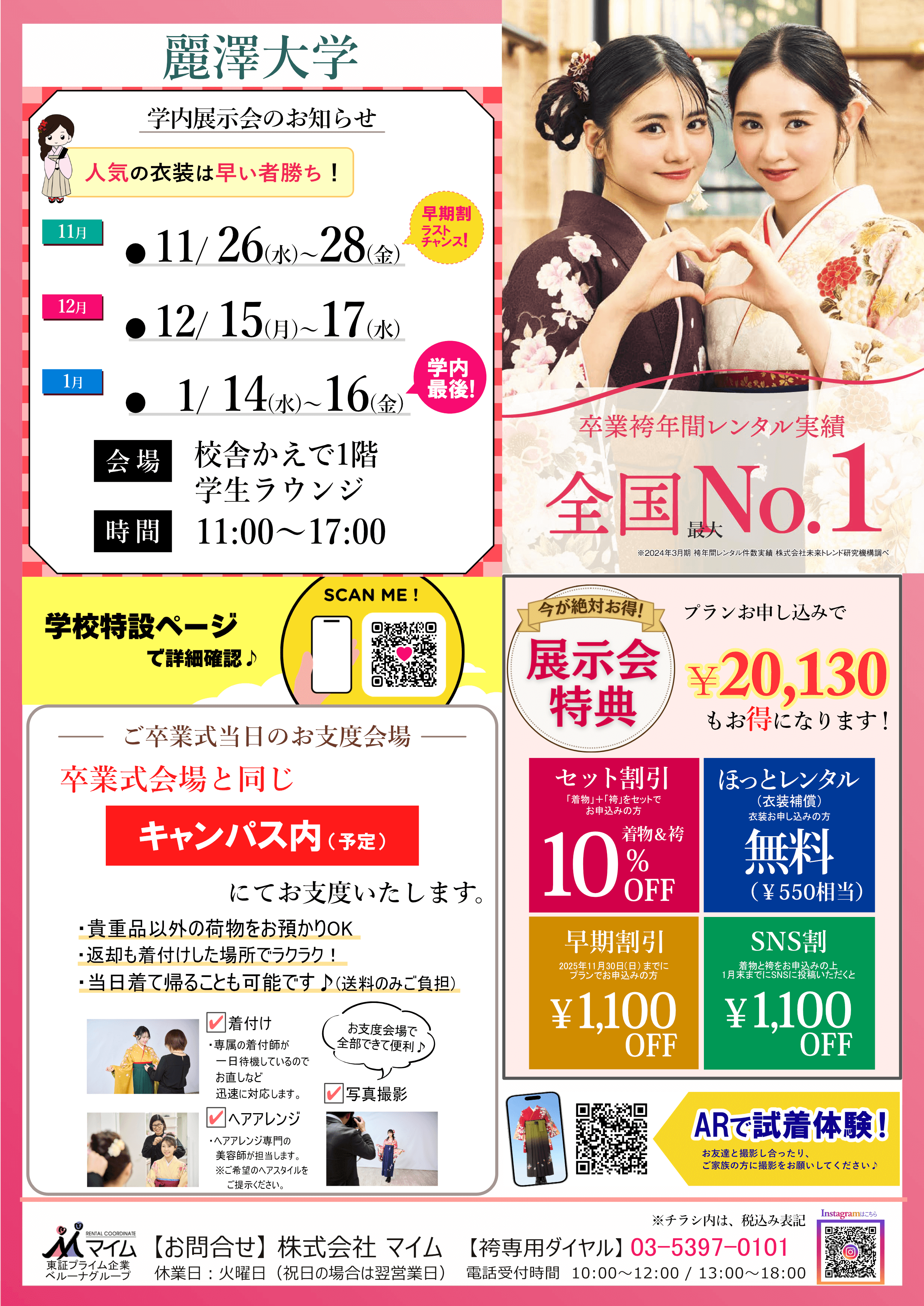 麗澤大学 ー 2026年卒業式レンタル袴情報 ー