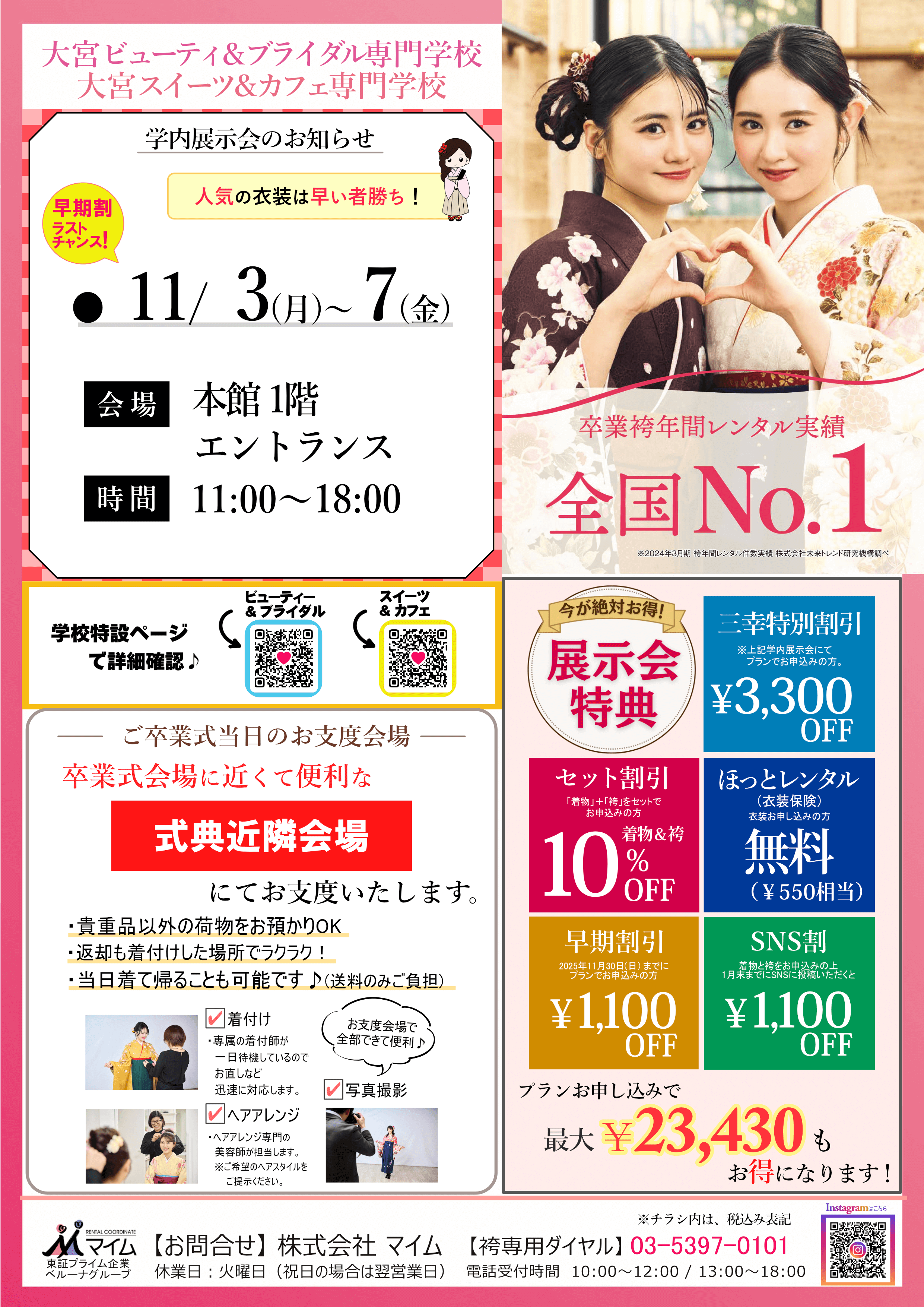 大宮スイーツ&カフェ専門学校 ー 2026年卒業式レンタル袴情報 ー