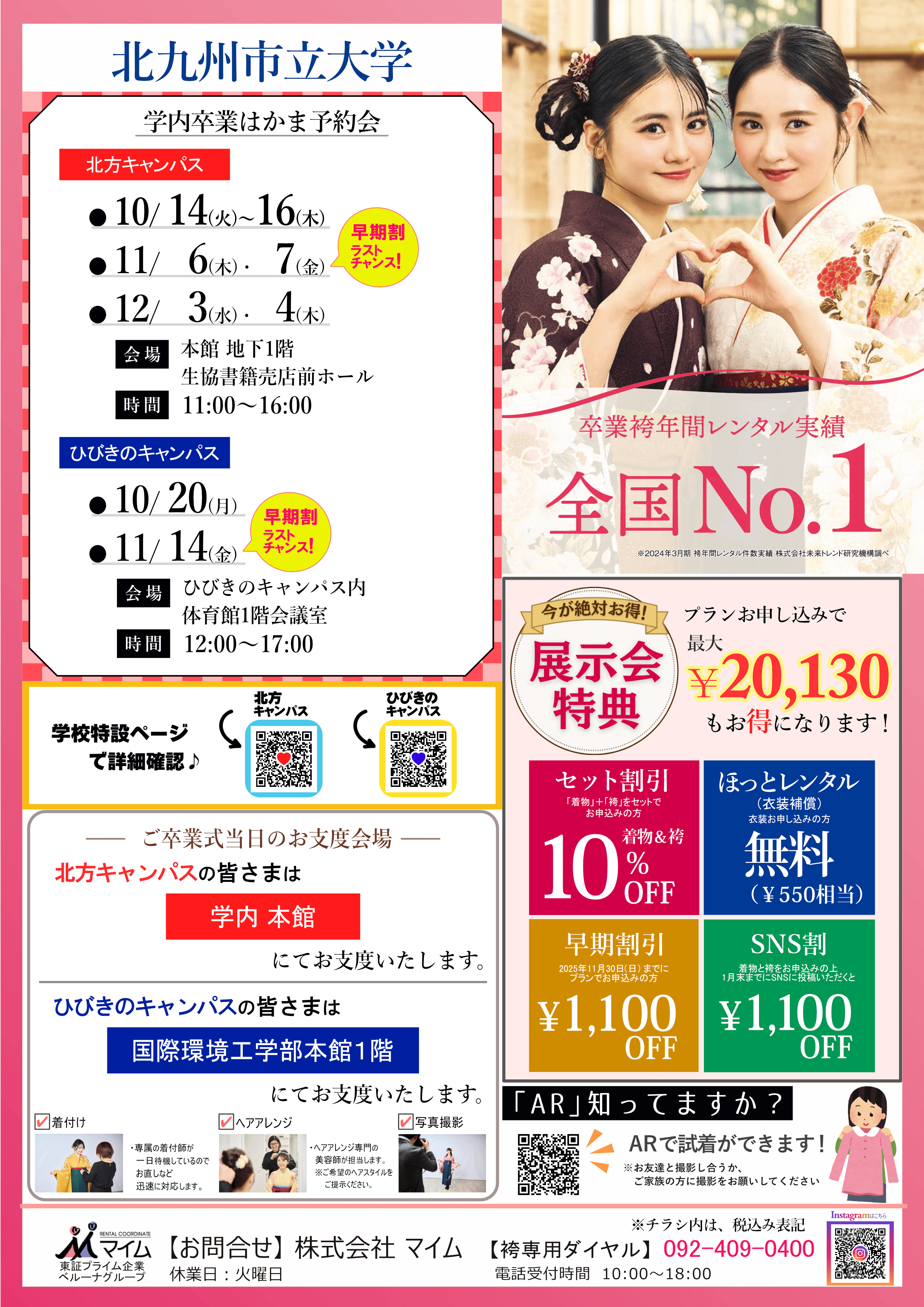 北九州市立大学 北方 ー 2026年卒業式レンタル袴情報 ー