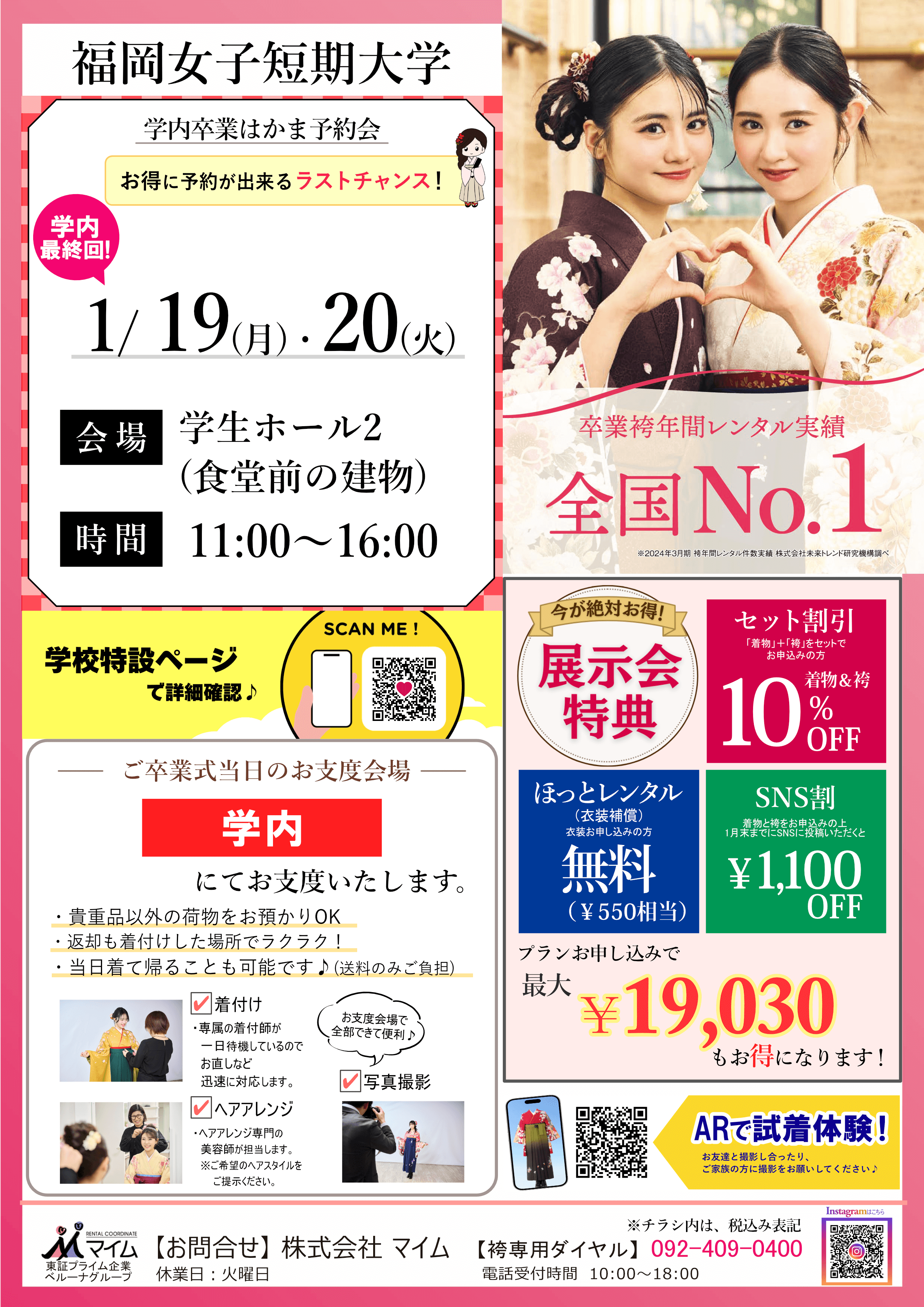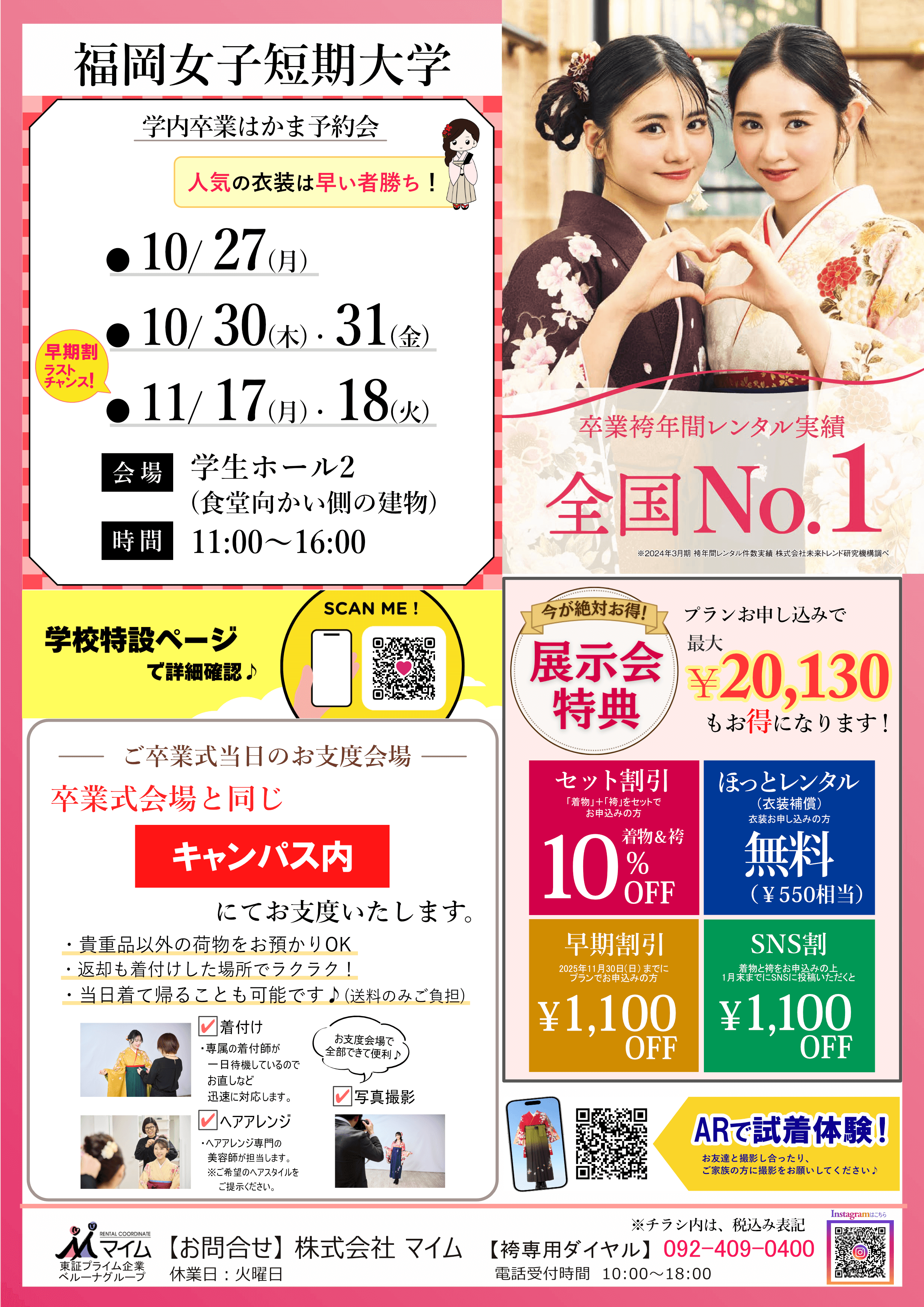 福岡女子短期大学 ー 2026年卒業式レンタル袴情報 ー