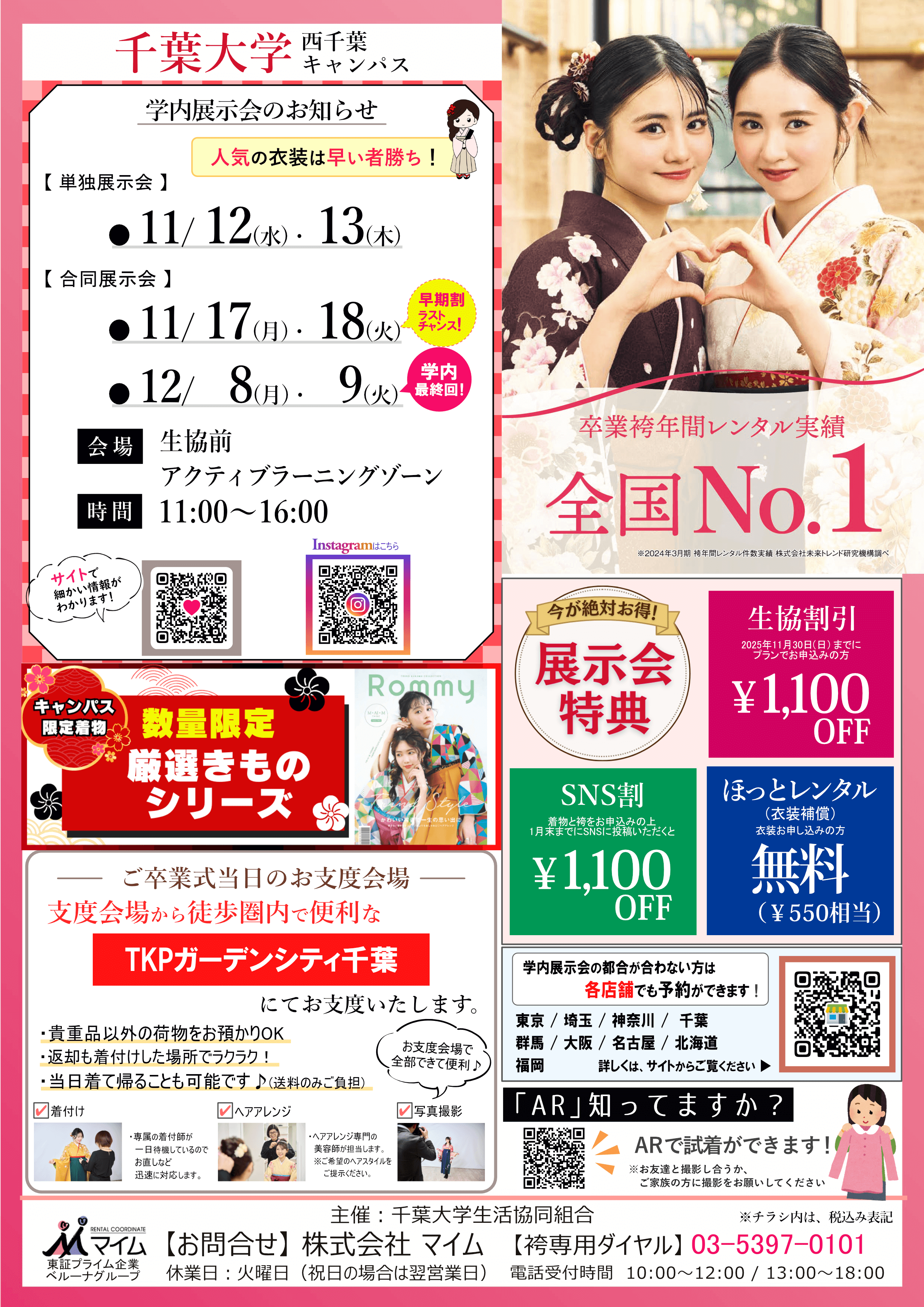 千葉大学 亥鼻 ー 2026年卒業式レンタル袴情報 ー