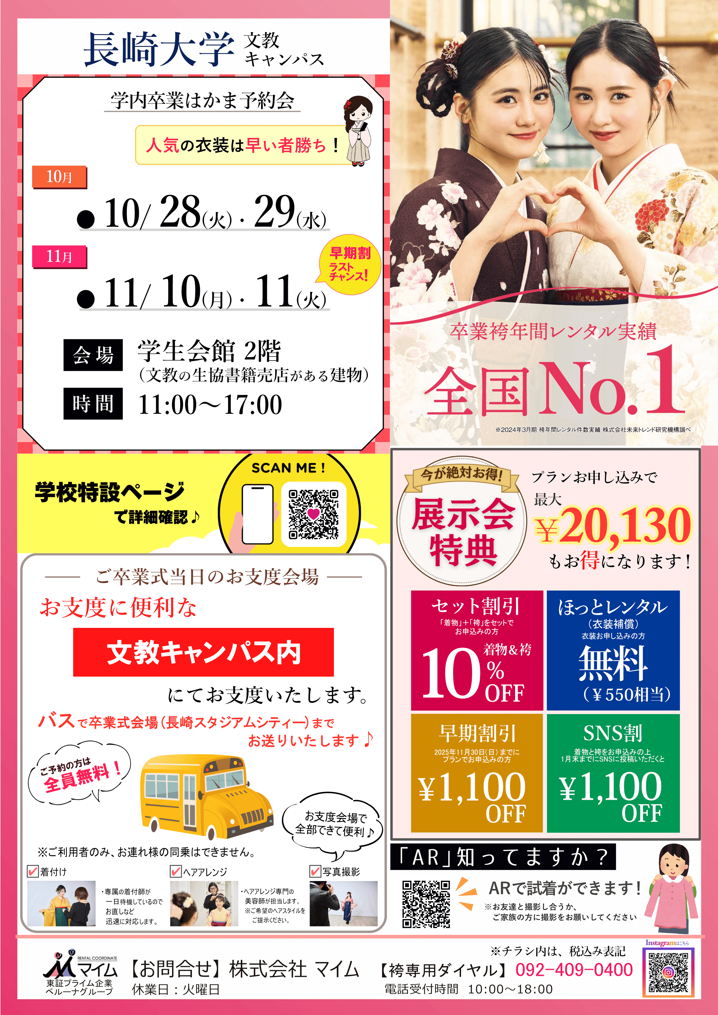 長崎大学 文教 ー 2026年卒業式レンタル袴情報 ー