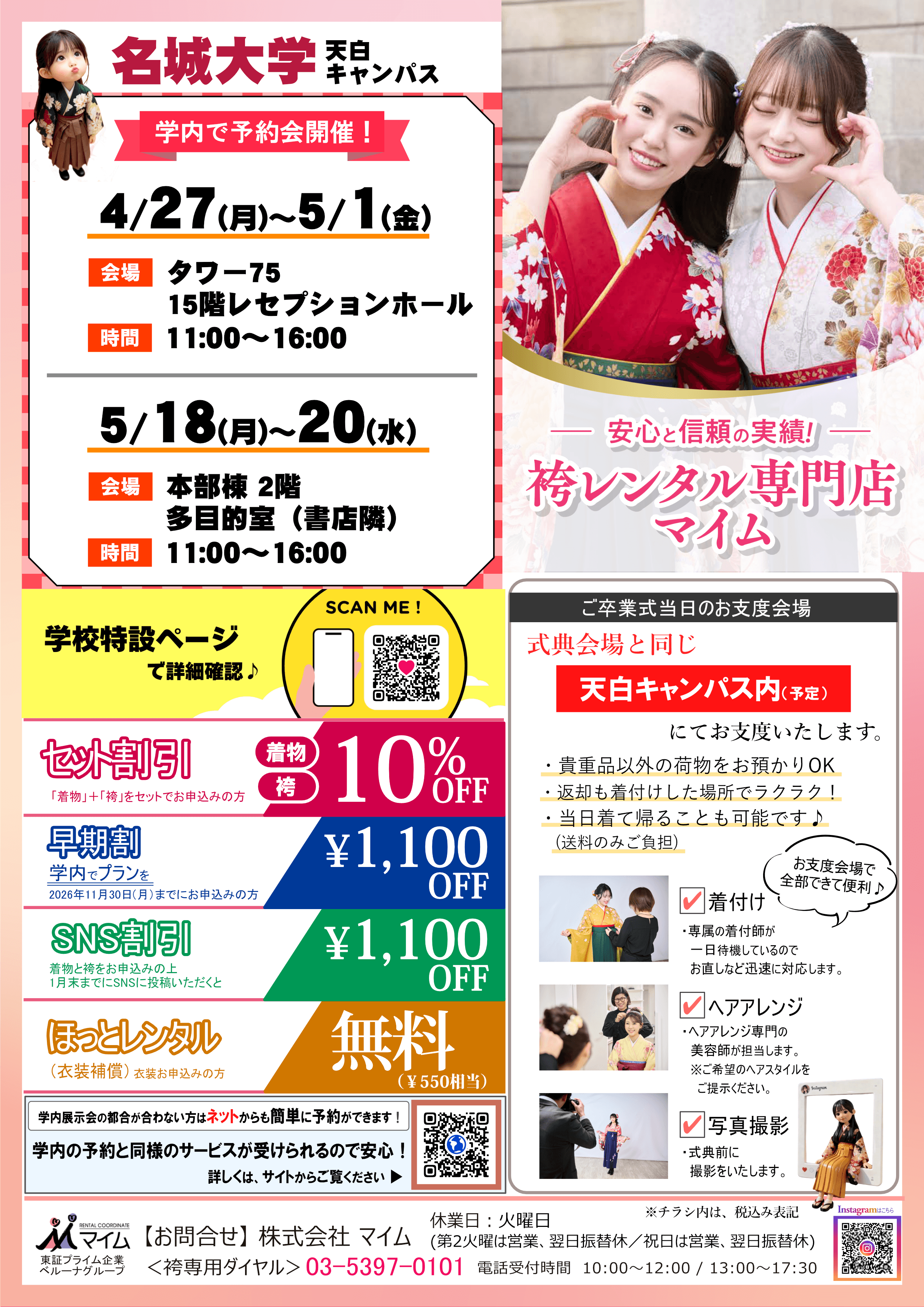 名城大学 天白 ー 2027年卒業式レンタル袴情報 ー