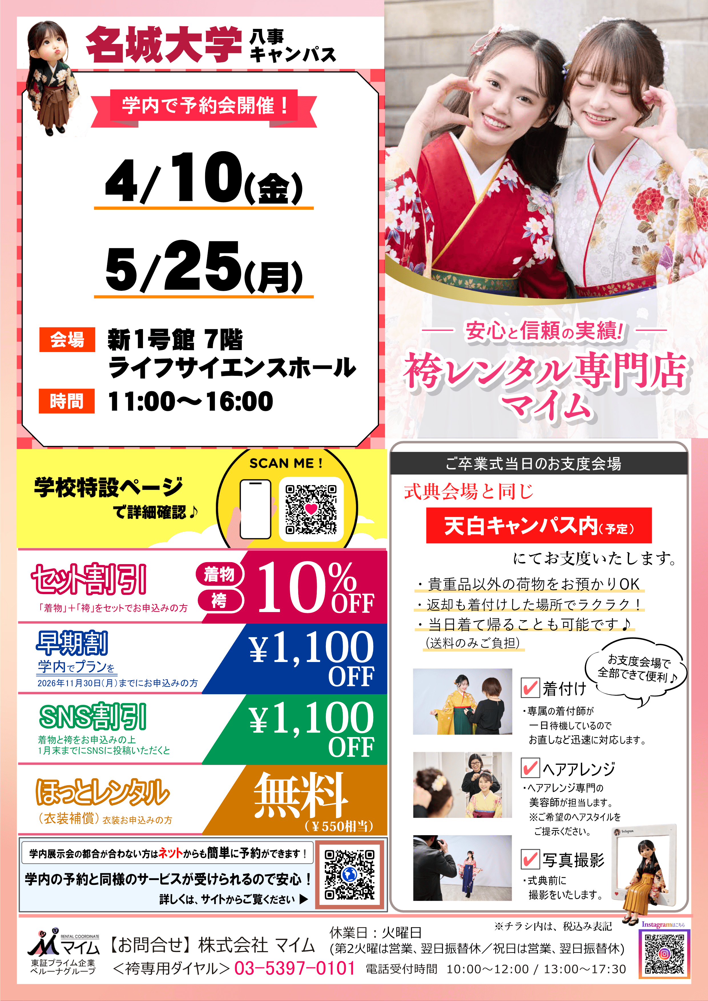 名城大学 八事 ー 2027年卒業式レンタル袴情報 ー