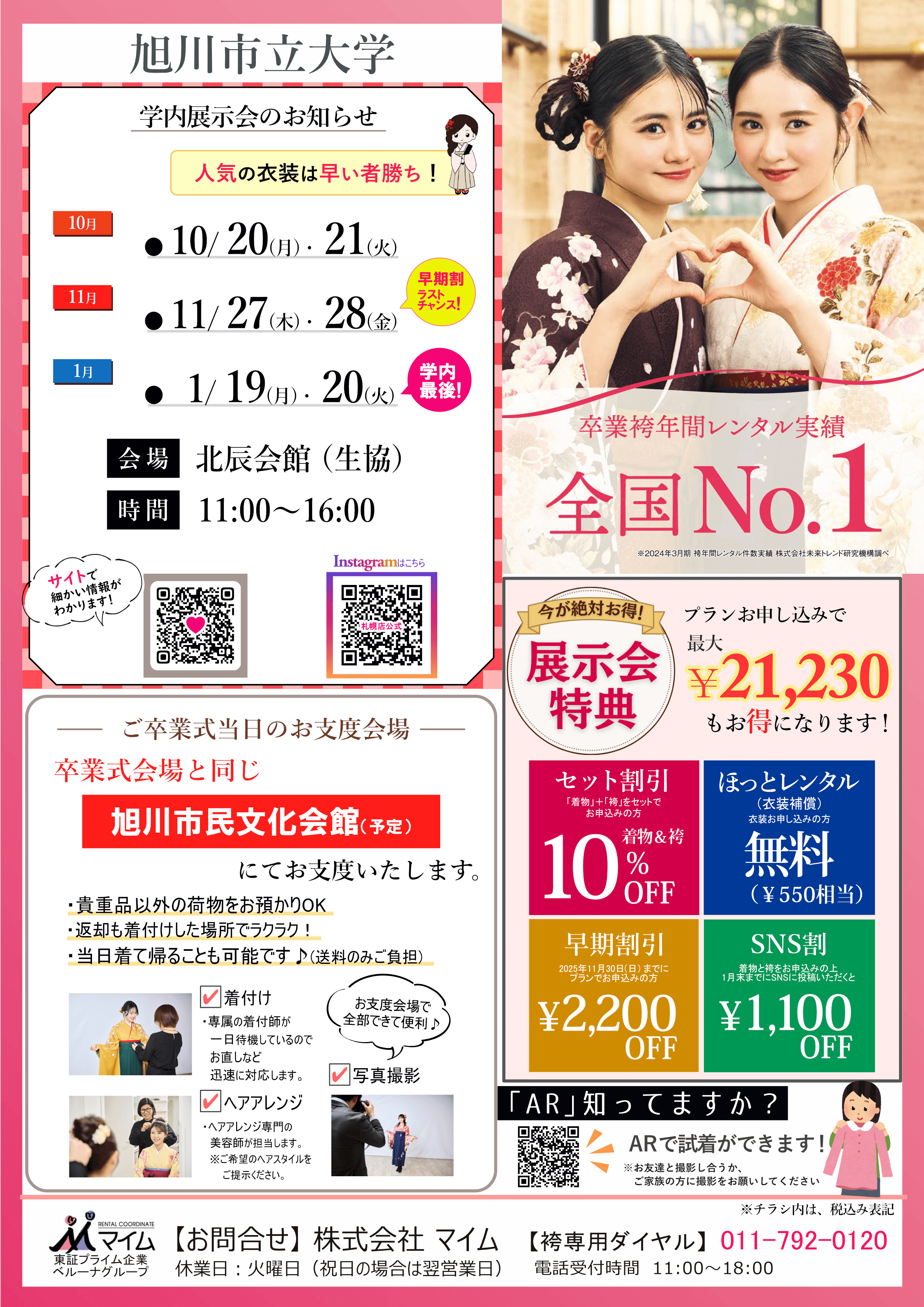 旭川市立大学 ー 2026年卒業式レンタル袴情報 ー