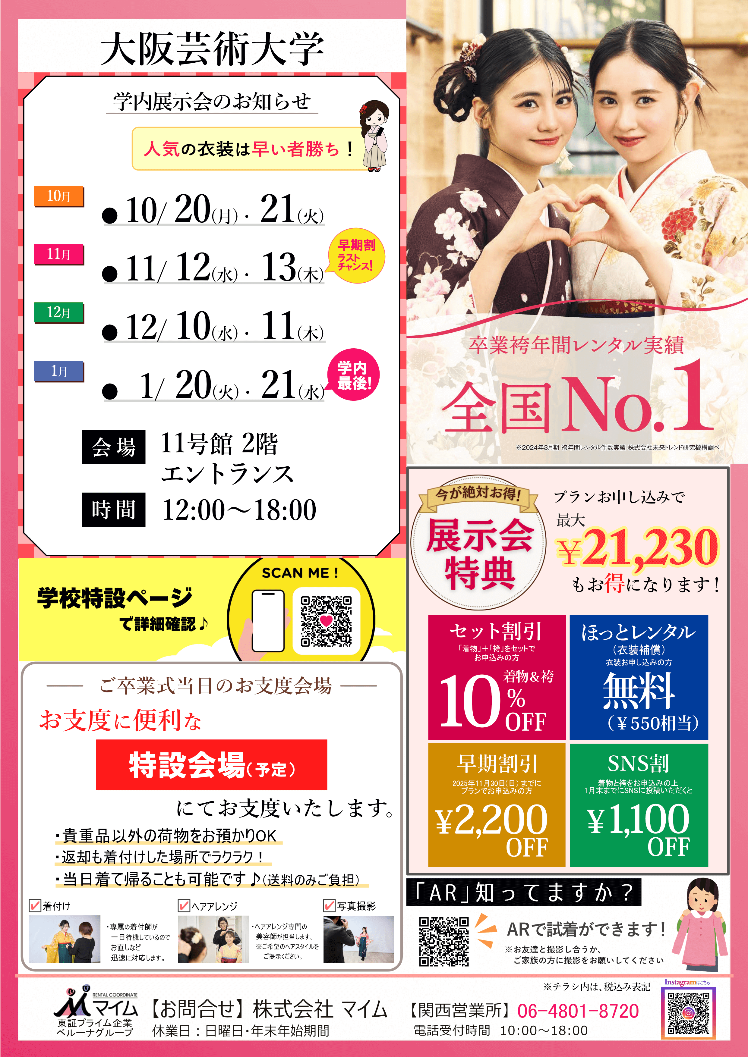 袴レンタルがスタートしました!また、大阪芸術大学の皆様は