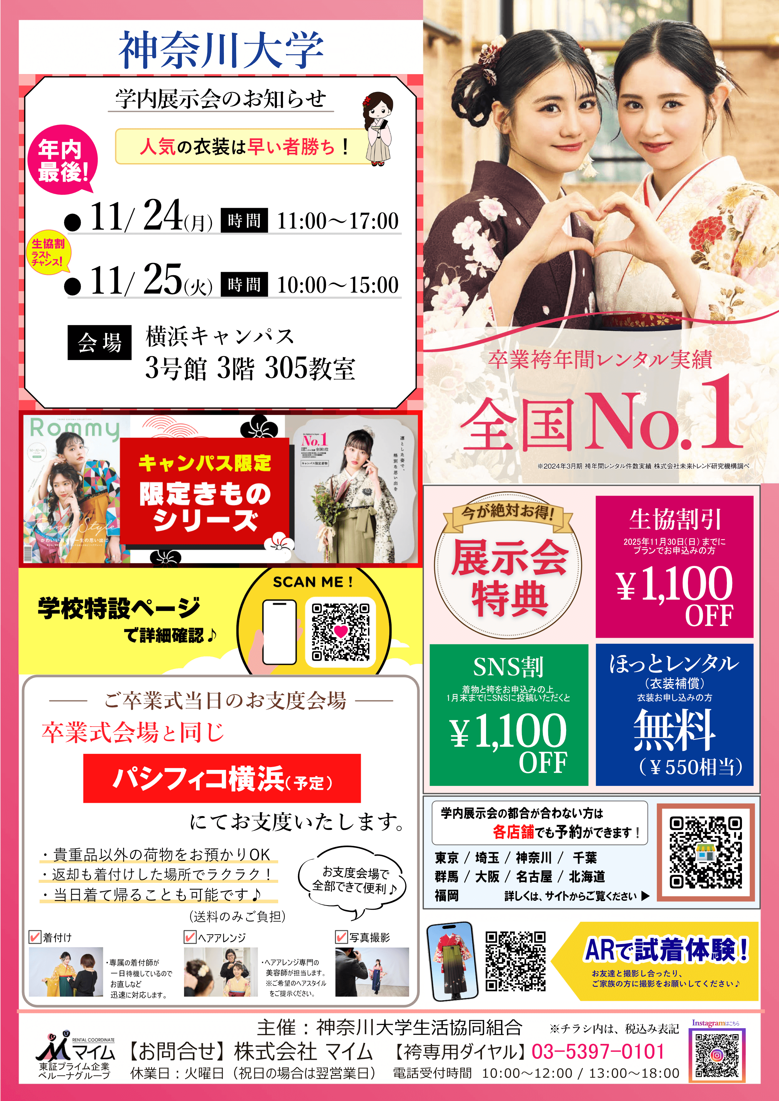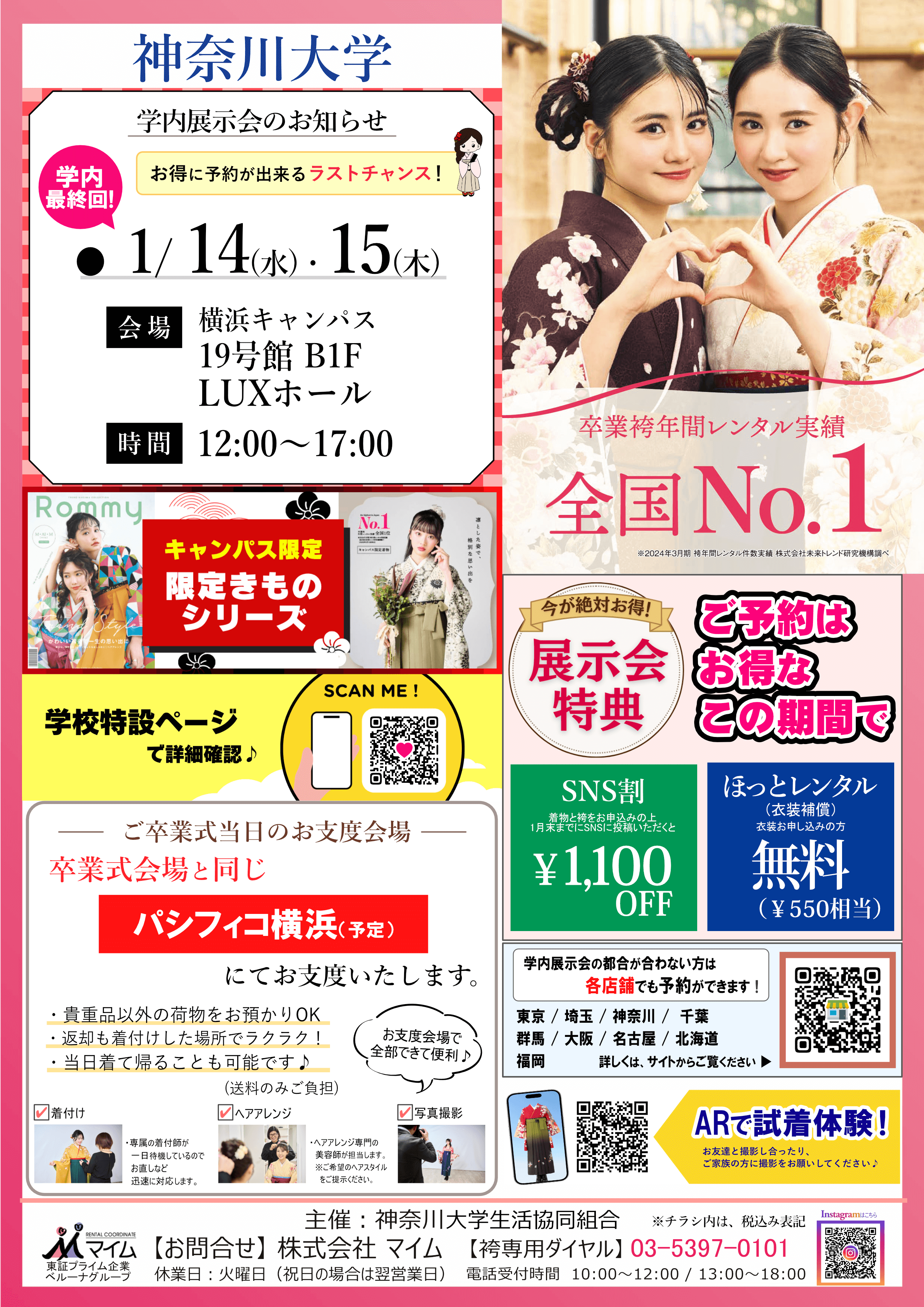 神奈川大学 みなとみらい ー 2026年卒業式レンタル袴情報 ー
