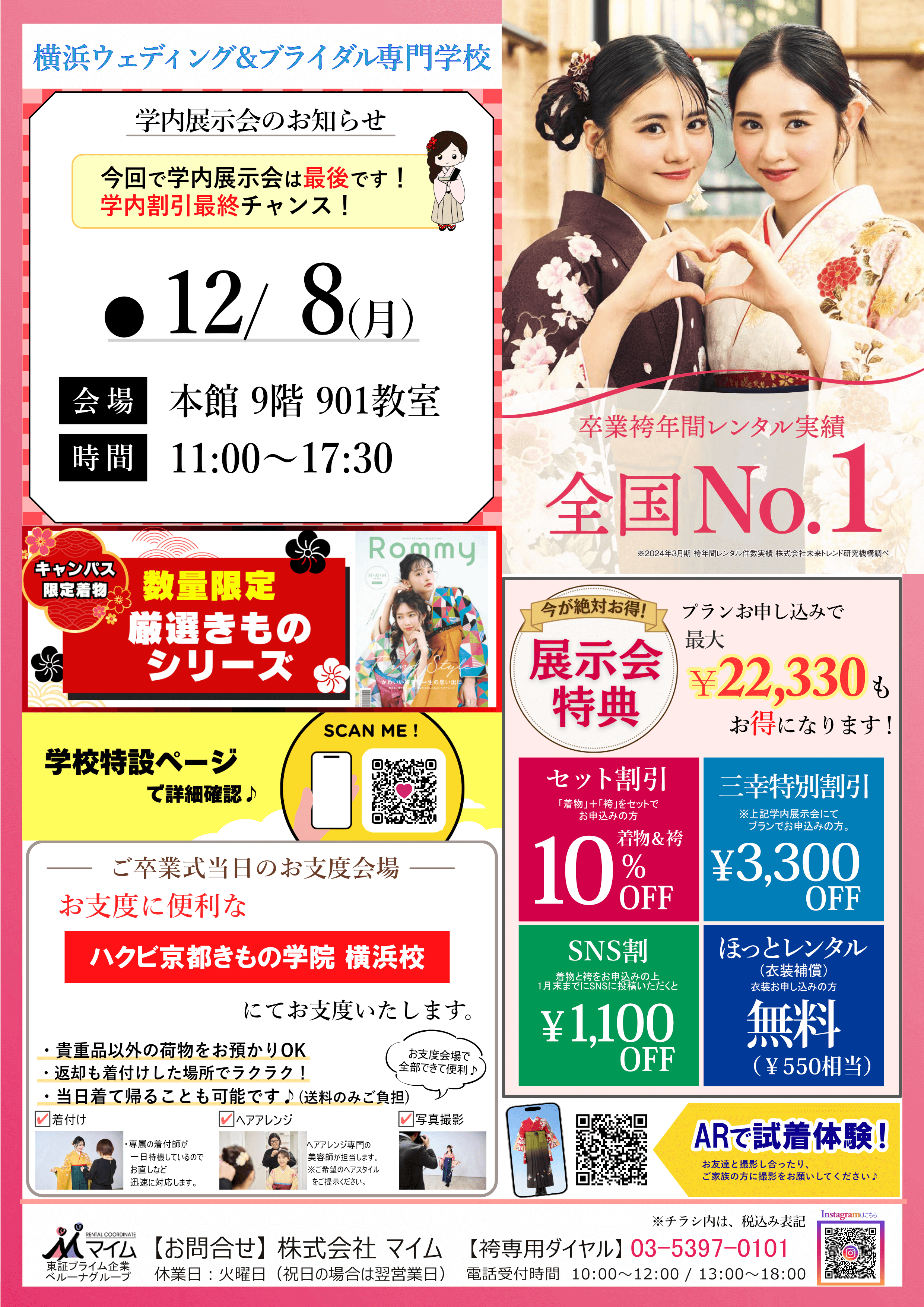 横浜ウェディング&ブライダル専門学校 ー 2026年卒業式レンタル袴情報 ー